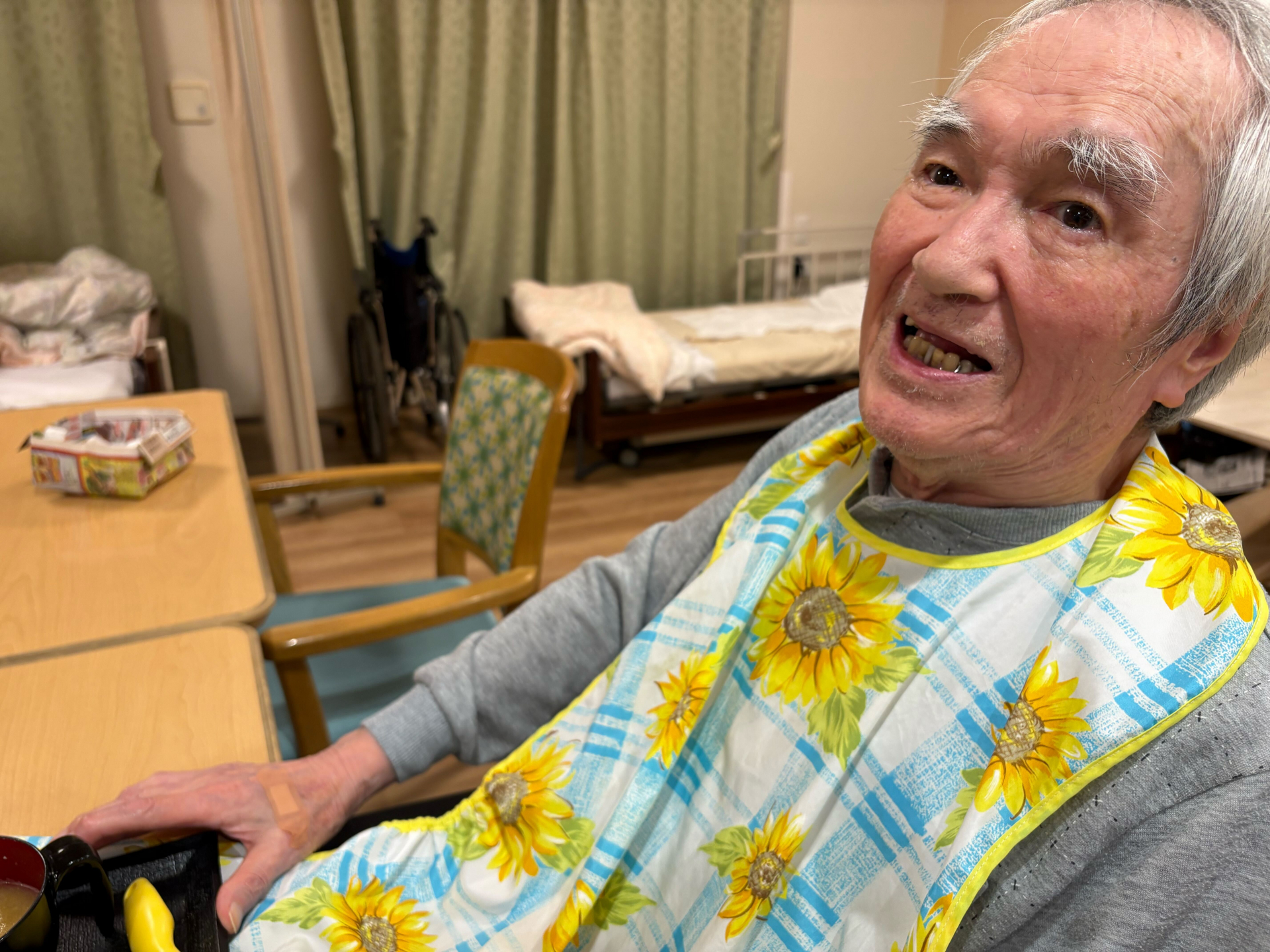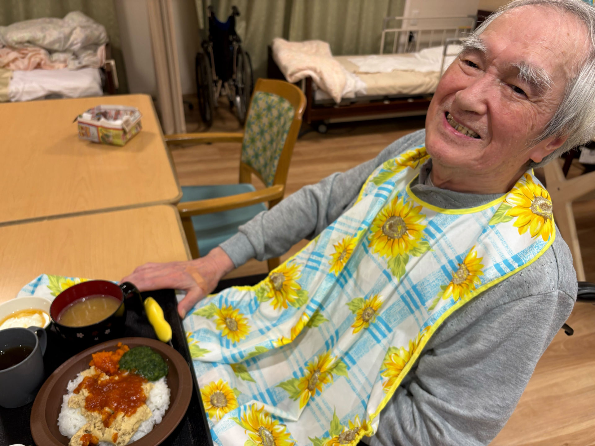 伺うと「今日の夕食はハンバーグですよ」と話すと、とても笑顔になられたとの事。