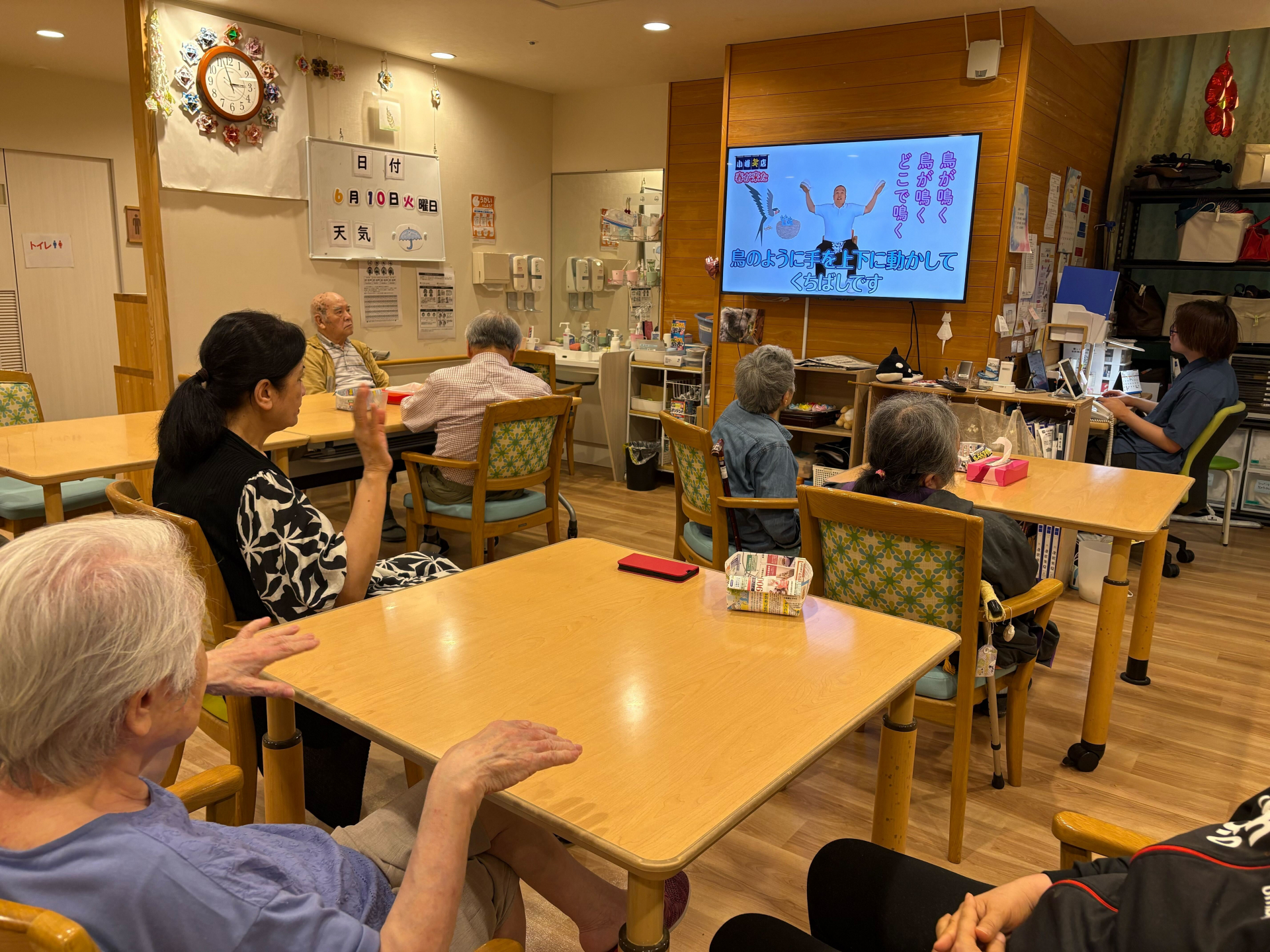 外に出られない時や、短い時間で皆で一緒に出来る事として、TVを使って体操をしています。