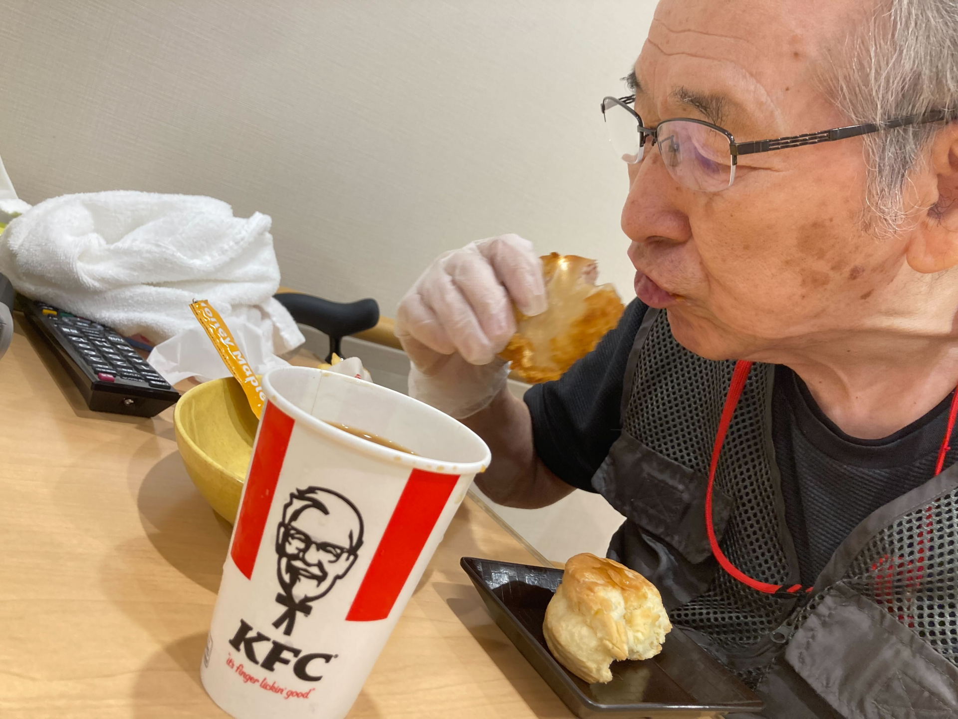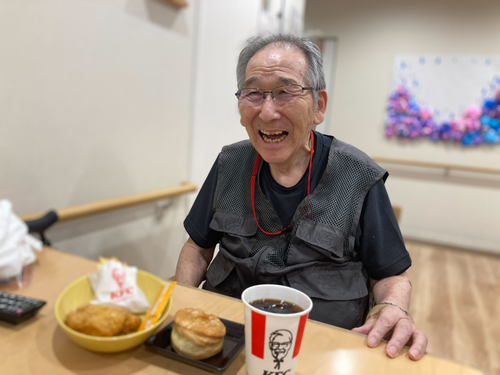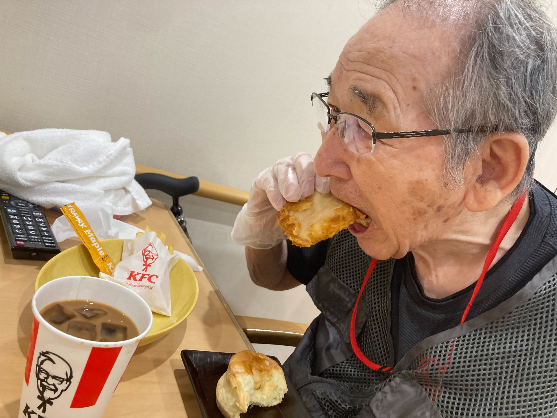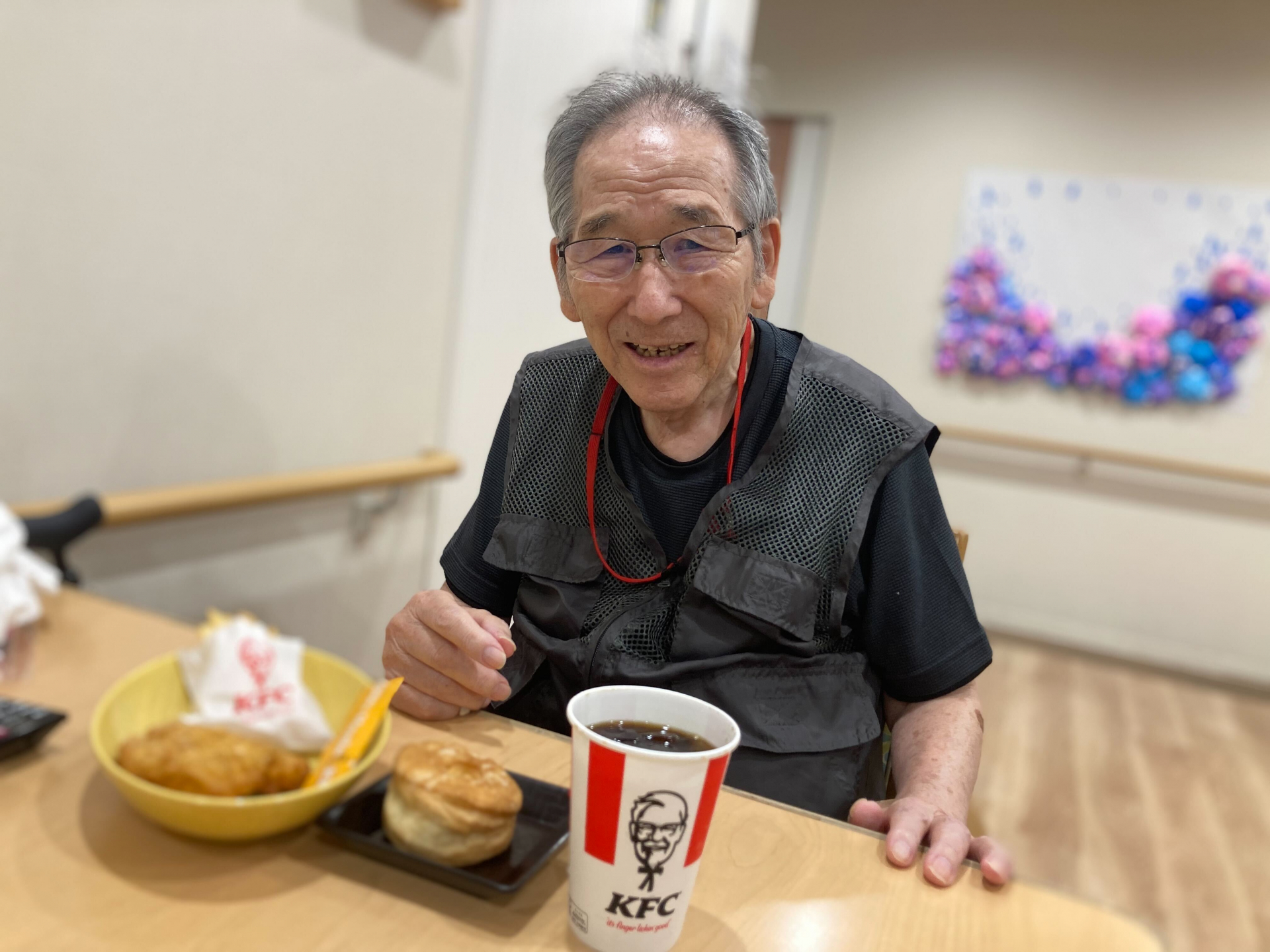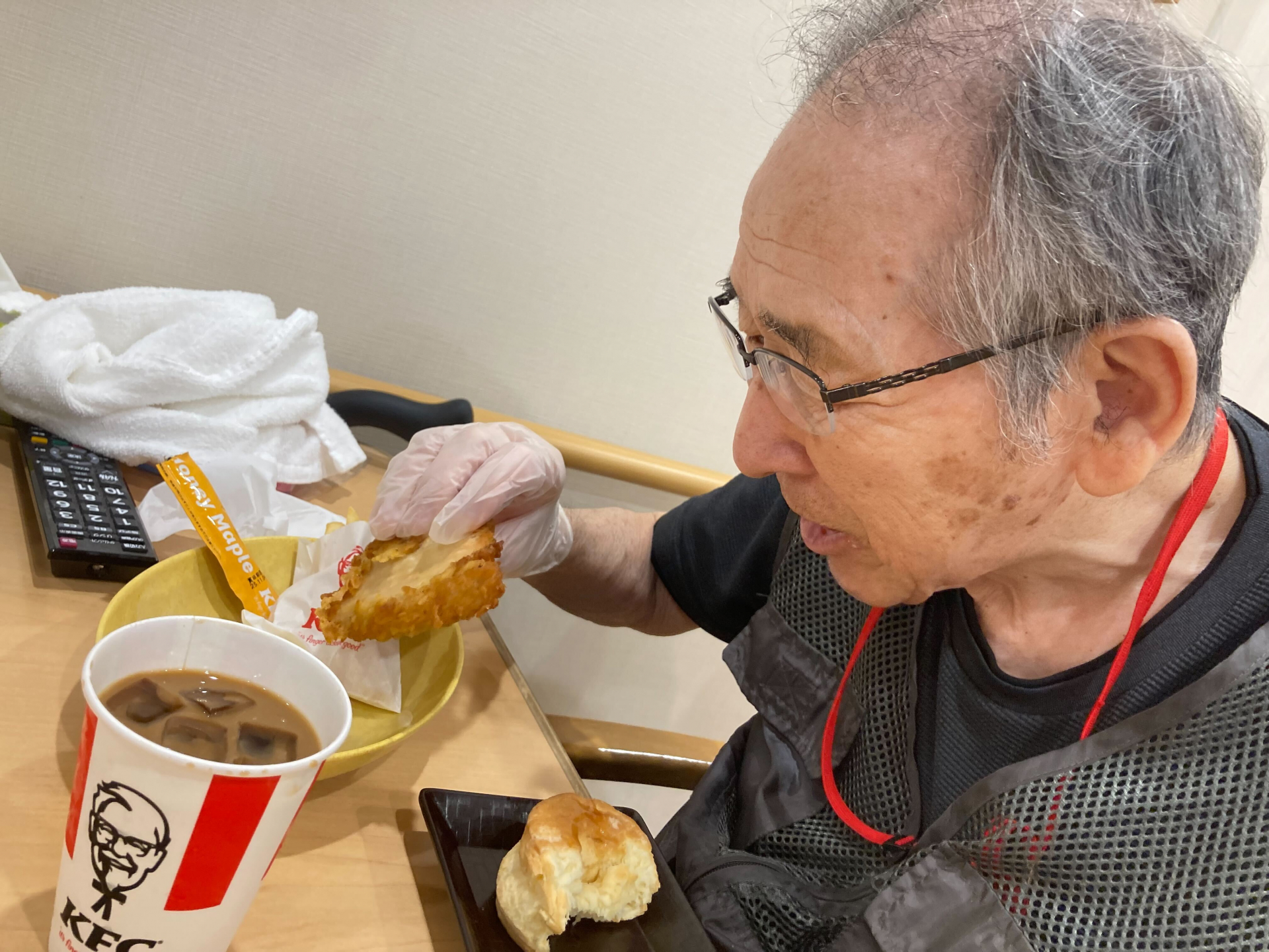 「ケンタッキーが食べたい」とのご希望があり、前日にご用意したところ、満面の笑みで召し上がってくださいました♬