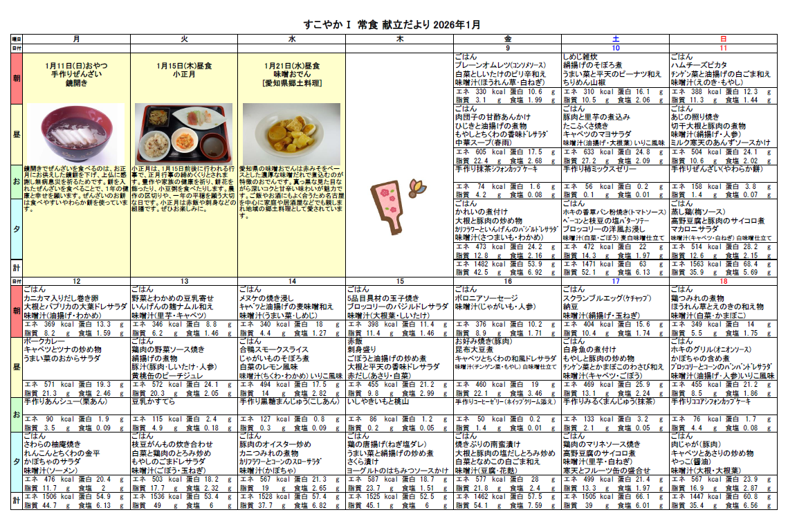 2025.12.26 お食事 1月の献立♬ Tweet シェアする 1月の献立をお伝えします☆彡 優っくり村下馬 杉原 前の記事 2025.12.29 お食事 【正月飾り】工作 次の記事 2025.12.25 お食事 【クリスマス】クリスマス会 一覧へ戻る