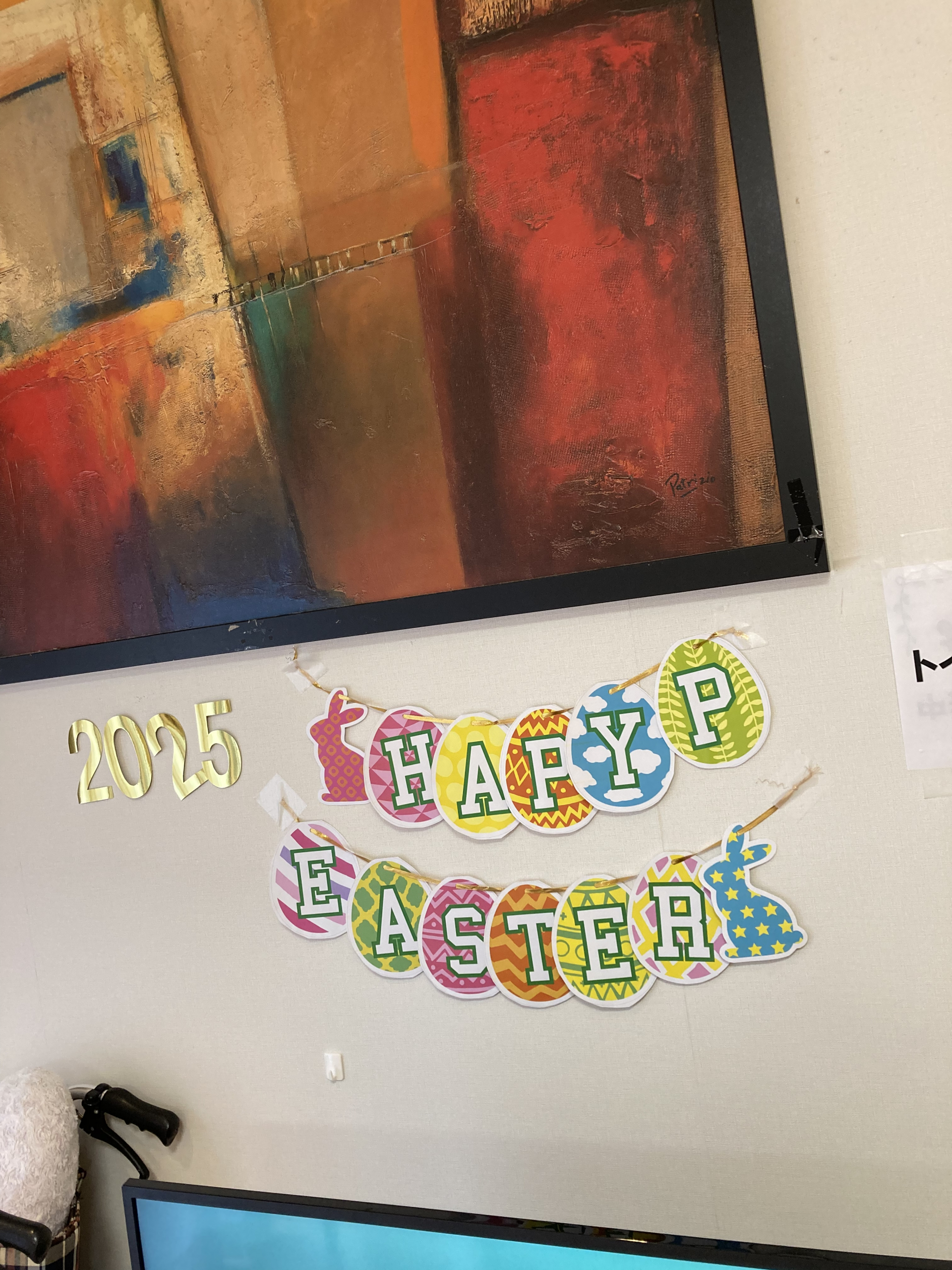 2025.04.21 活動報告(IN) イースター Tweet シェアする こんにちは 一階優っくり村GH石神井台沼辺です。 HAPPY EASTER 飾りを作ってみました! スタッフのディニ #奉優会 #レク 前の記事 2025.04.22 活動報告(IN) お買い物 次の記事 2025.04.21 活動報告(IN) 手作りチョコパイ 一覧へ戻る
