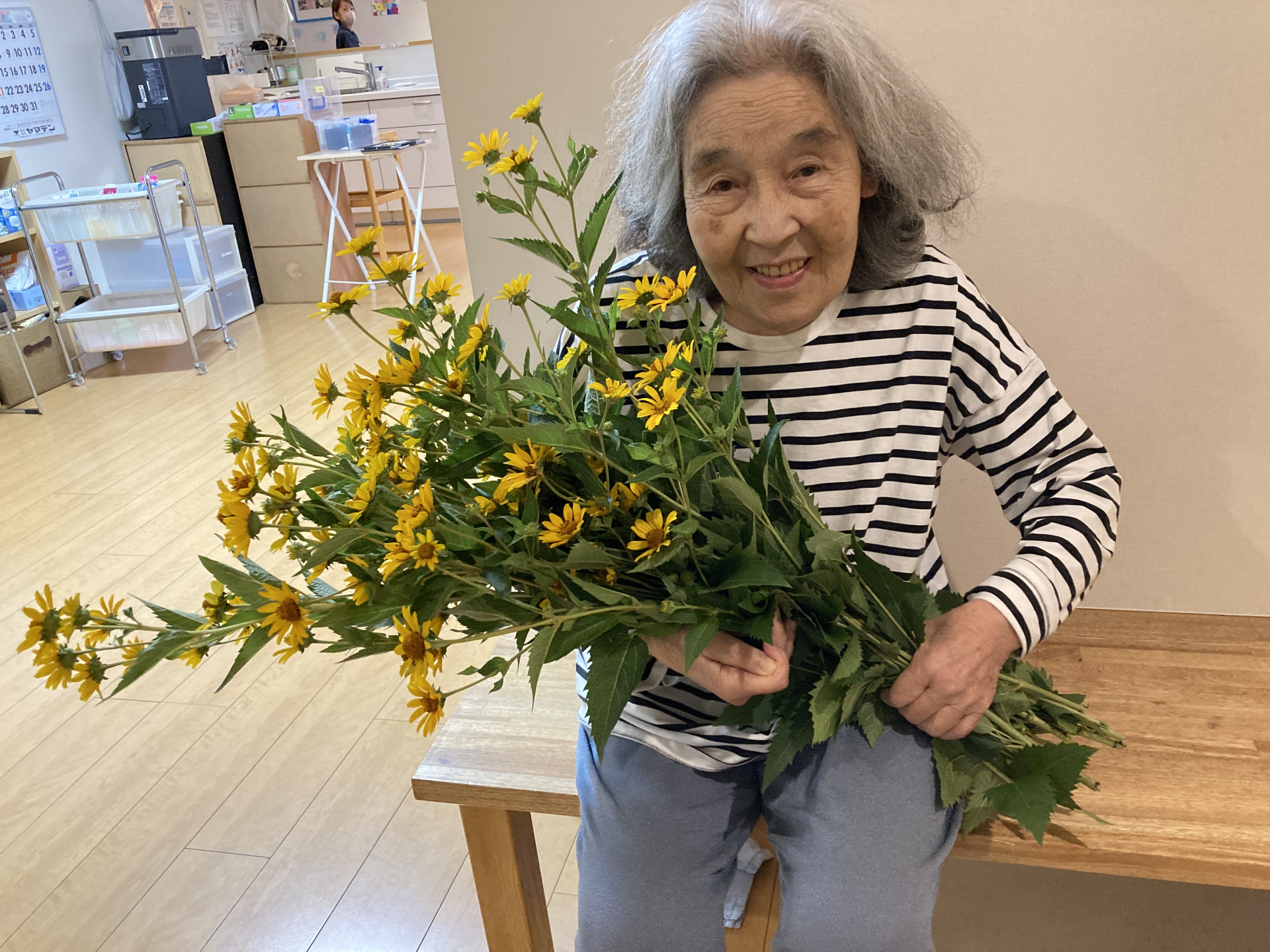 2025.07.13 活動報告 【2F】お花を頂きました!! Tweet シェアする こんにちは!優っくりグループホーム石神井台沼辺2階です。 お散歩に出かけると、ご近所の方がひまわりを下さいました! 綺麗ですね(^^♪ また外に出かけましょう! GH2階 相沢 前の記事 2025.07.17 活動報告 【グループホーム雰囲気】仲良しな二人 次の記事 2025.07.12 活動報告 【2F】お茄子収穫!! 一覧へ戻る