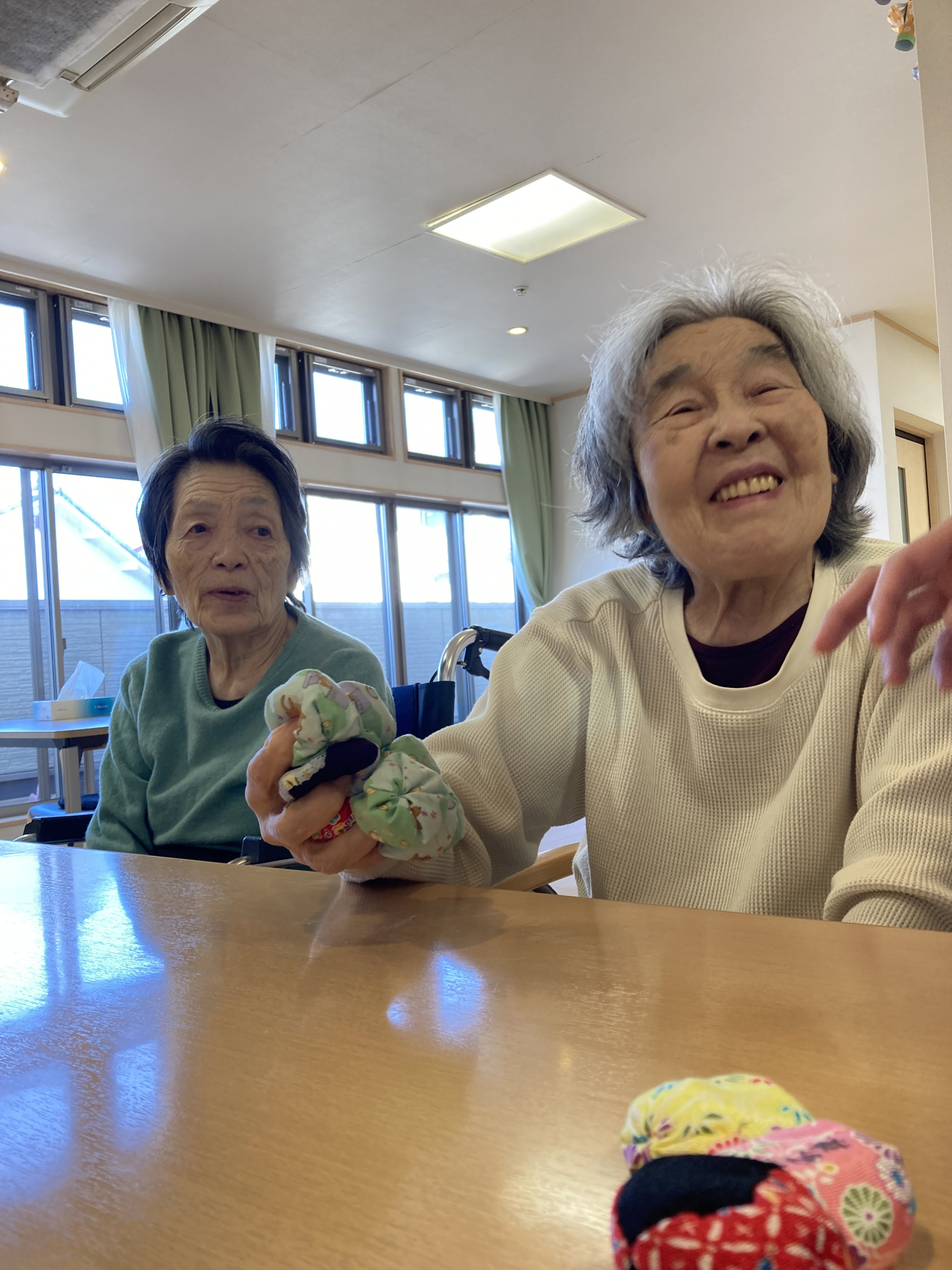 今回はお手玉を使用したリハビリを考えてくださいました。手を使う作業は脳の活性化にもつながります。