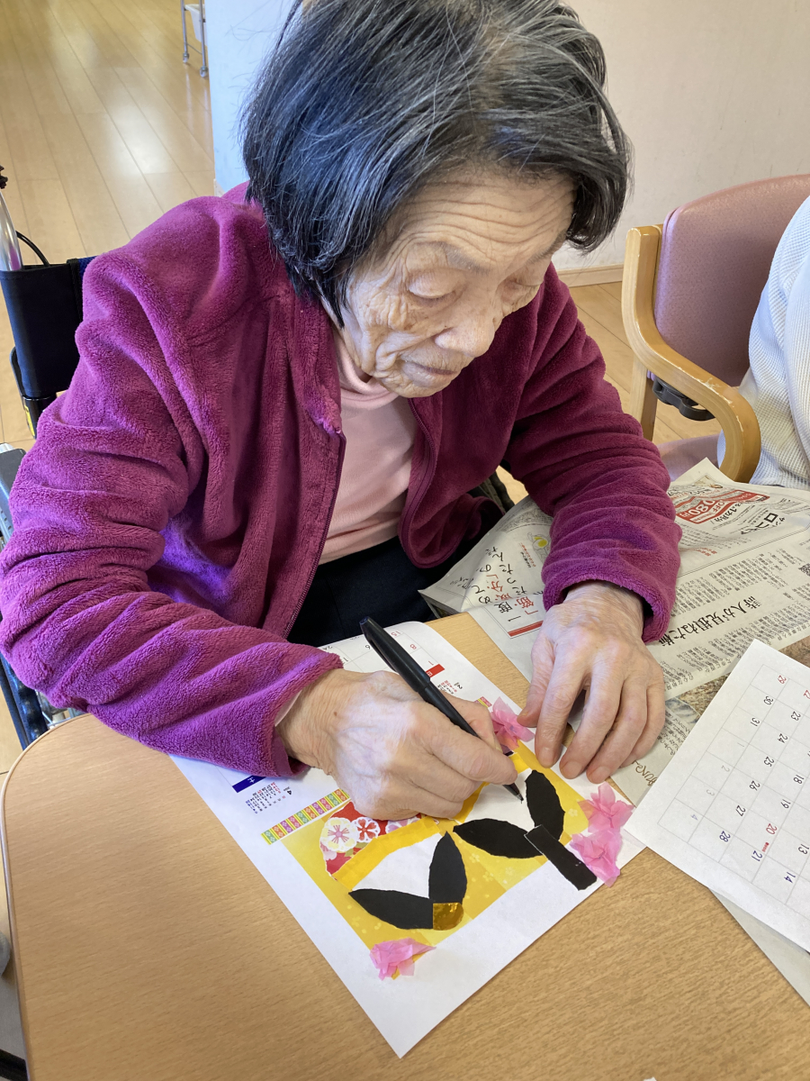 ということで、ひな祭りをモチーフにしたカレンダーを作業療法士の職員と一緒に作成!とても、真剣な眼差しです。