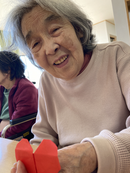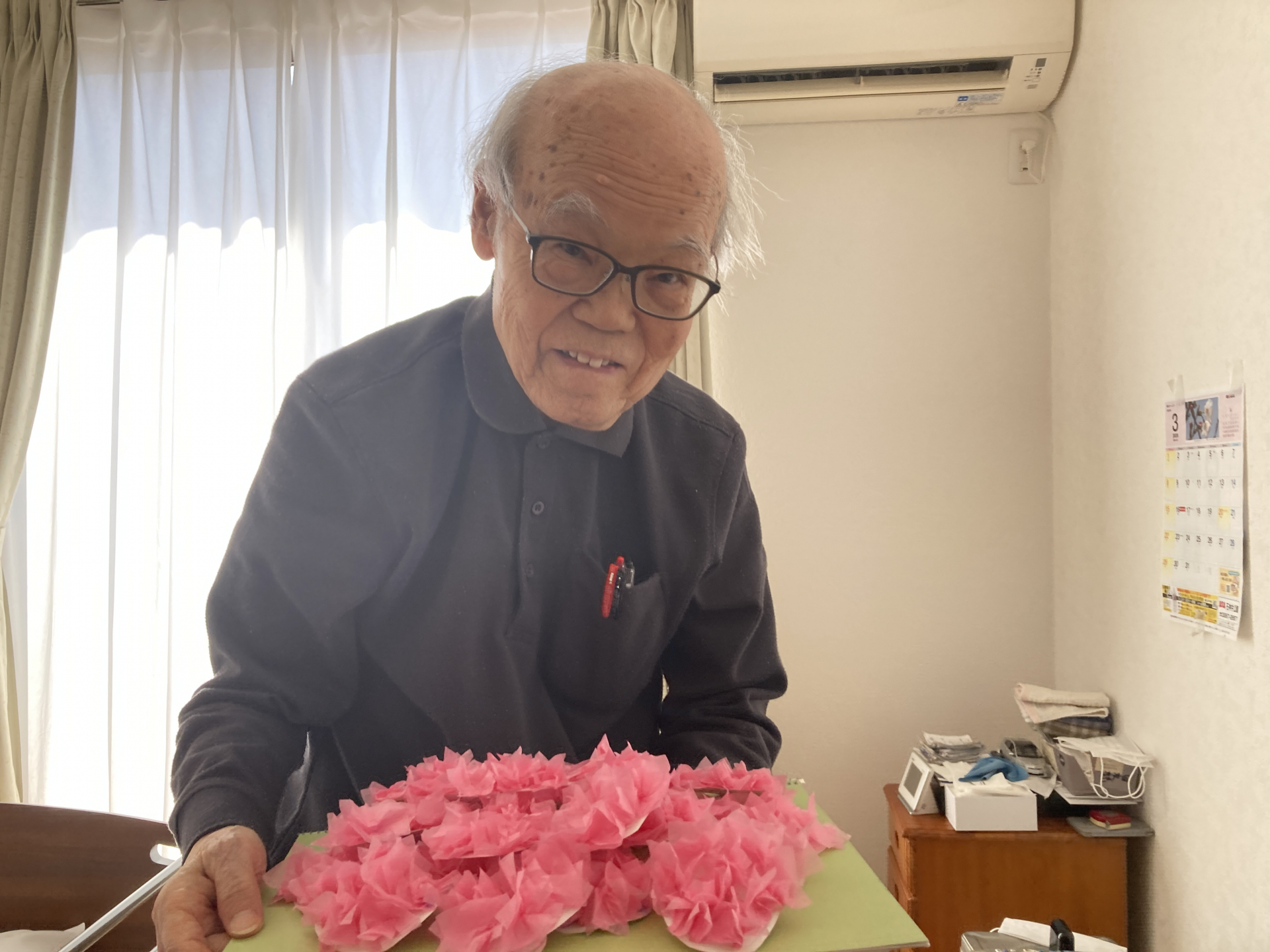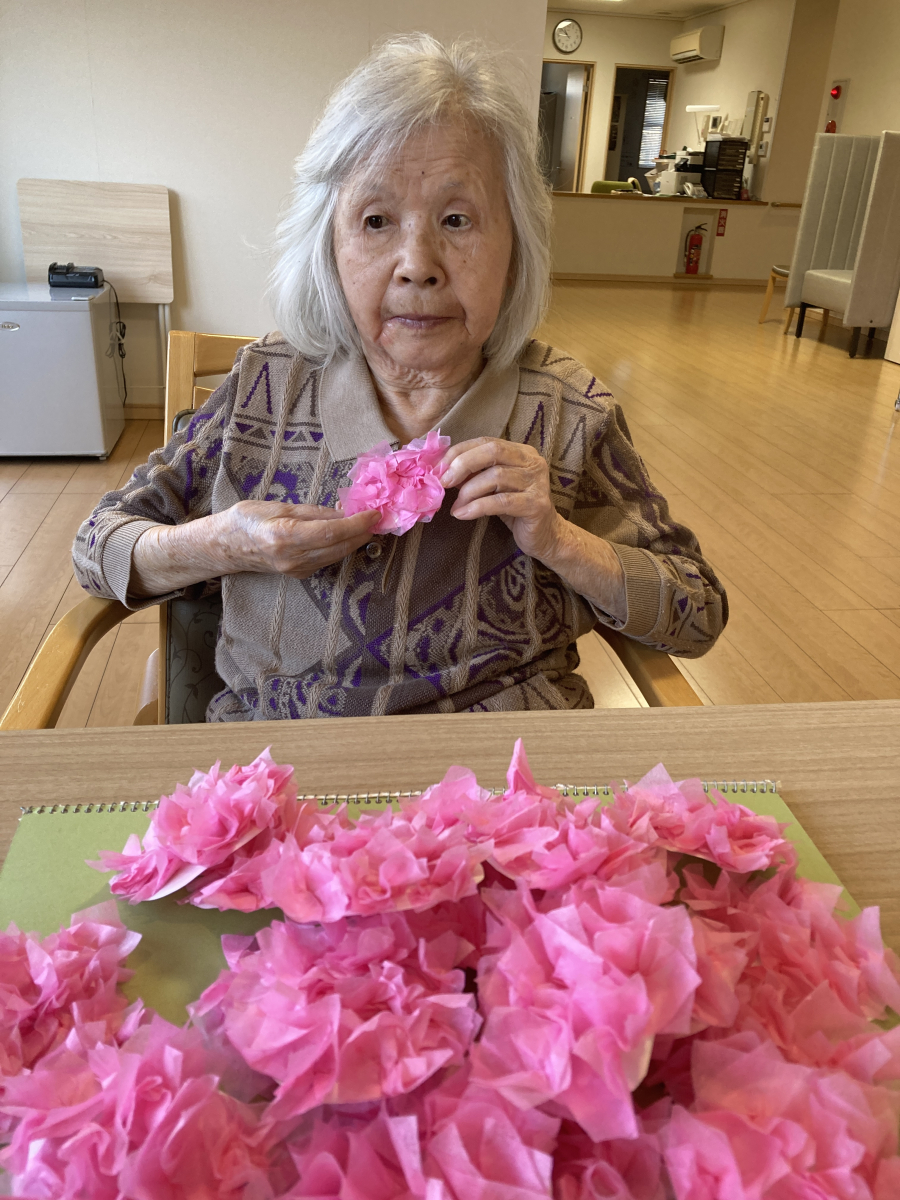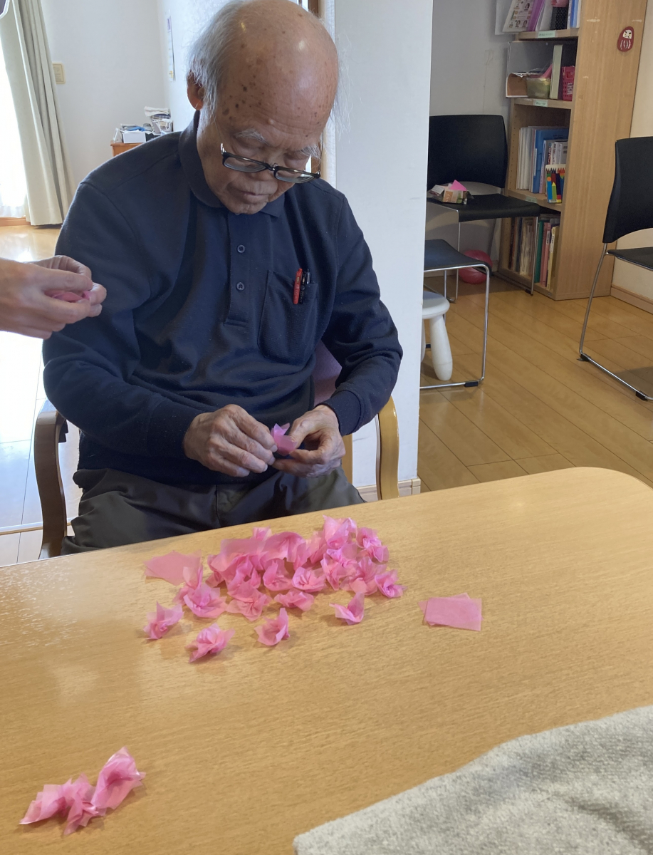 職員と一緒に、せっせと桜を作って下さるS様。手先がとても器用です!