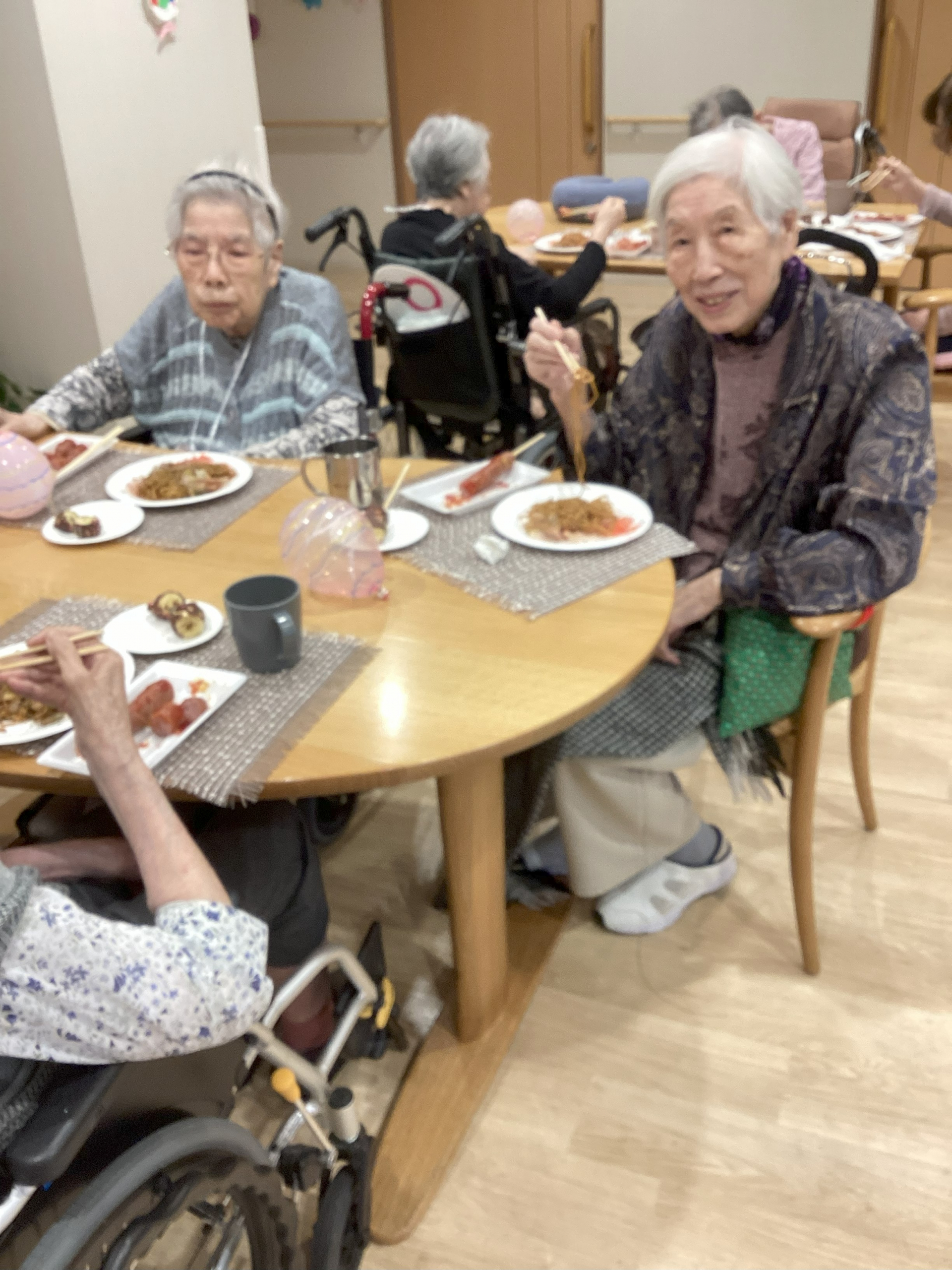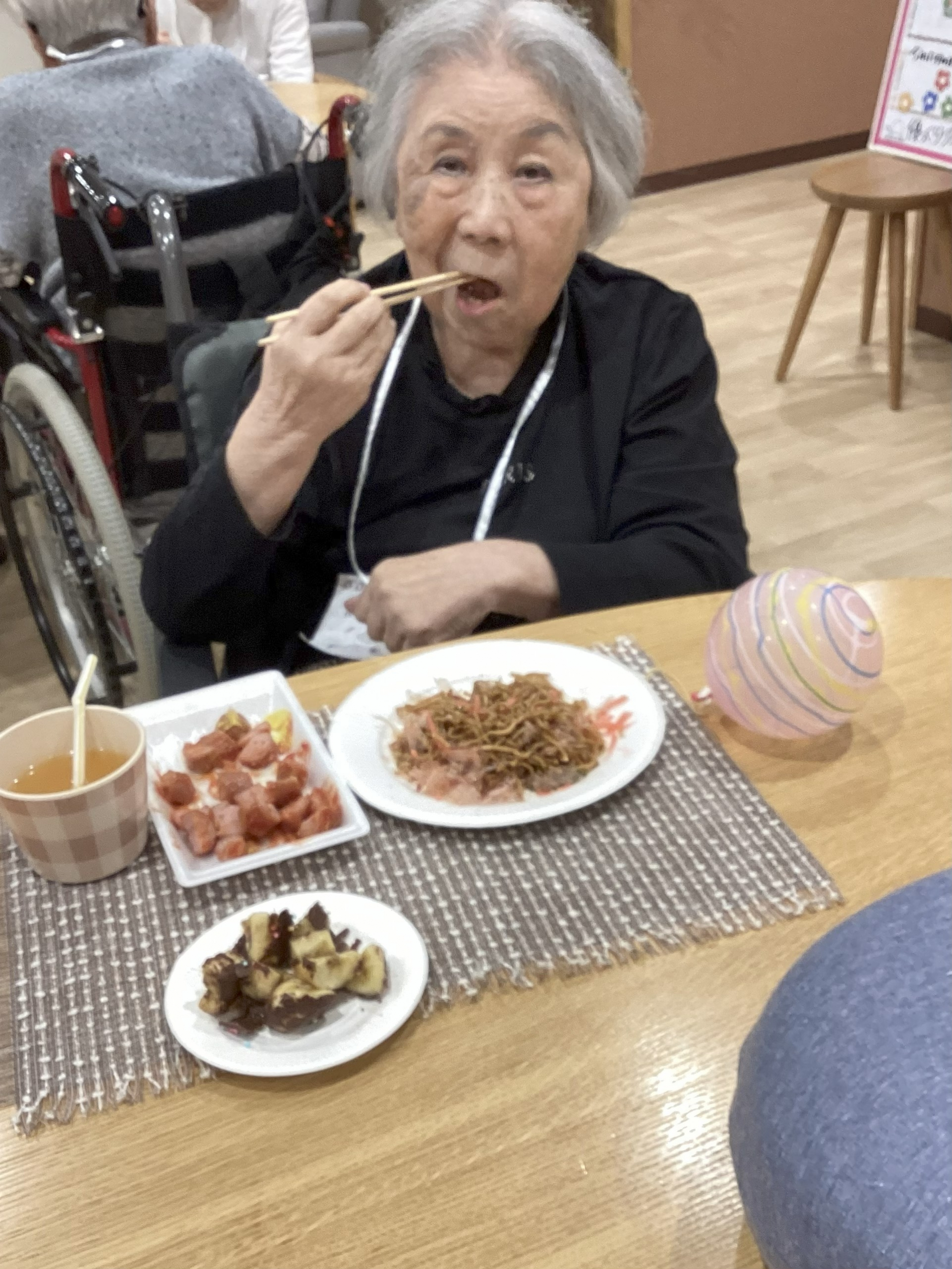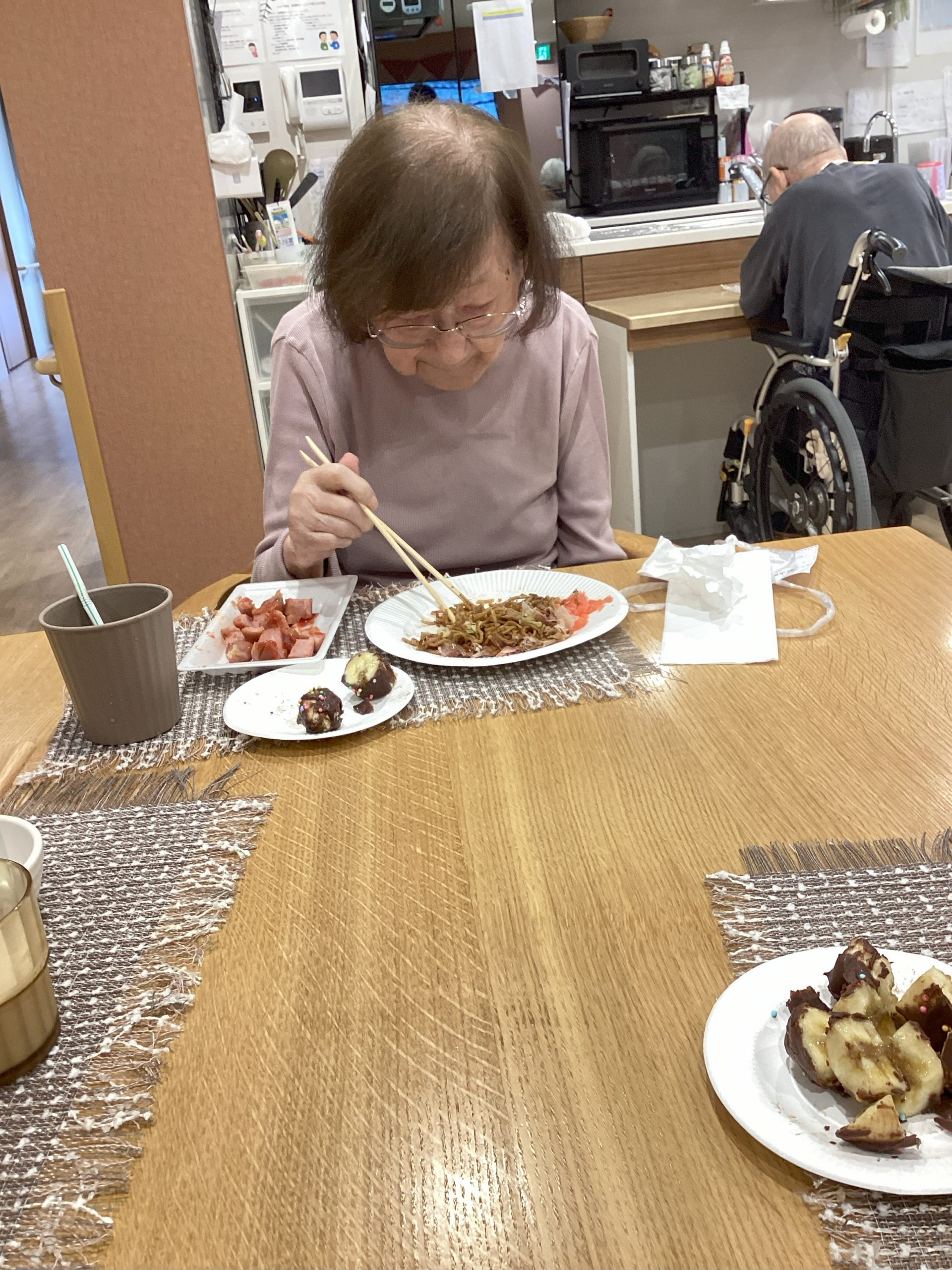 1階では焼きそば、チョコバナナ、フランクフルト、かき氷を職員が作って提供致しました。
