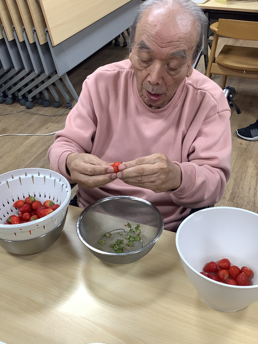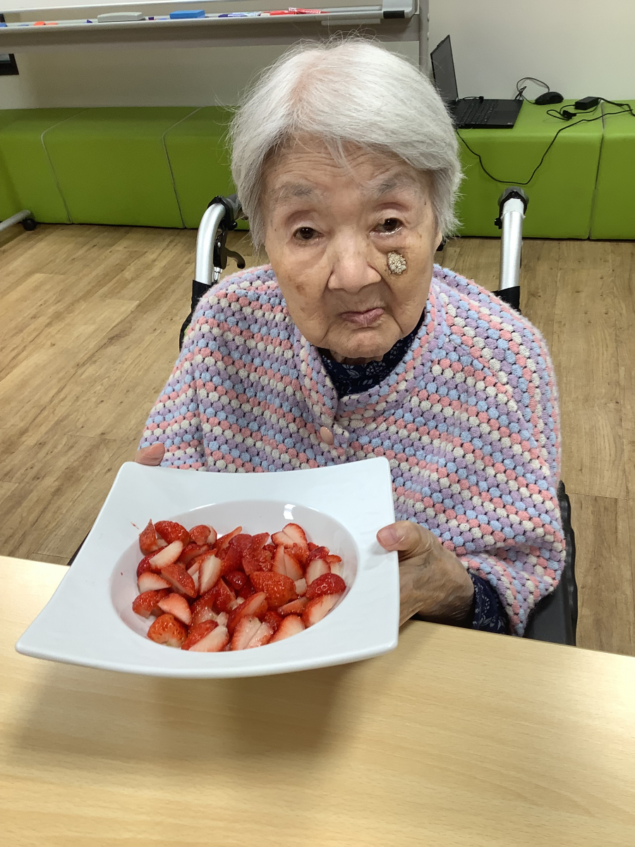S様にはイチゴのヘタ取りとバナナのカットをお願いしました(^_-)-☆