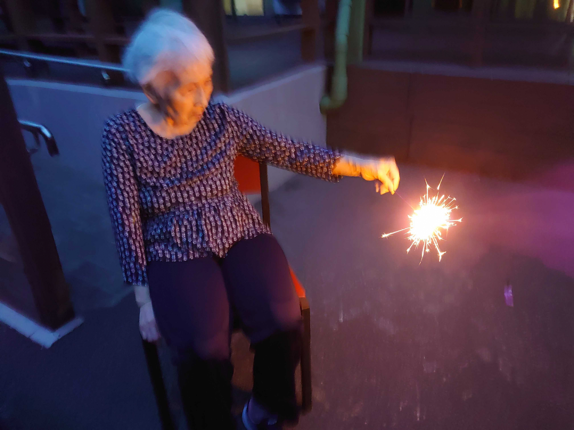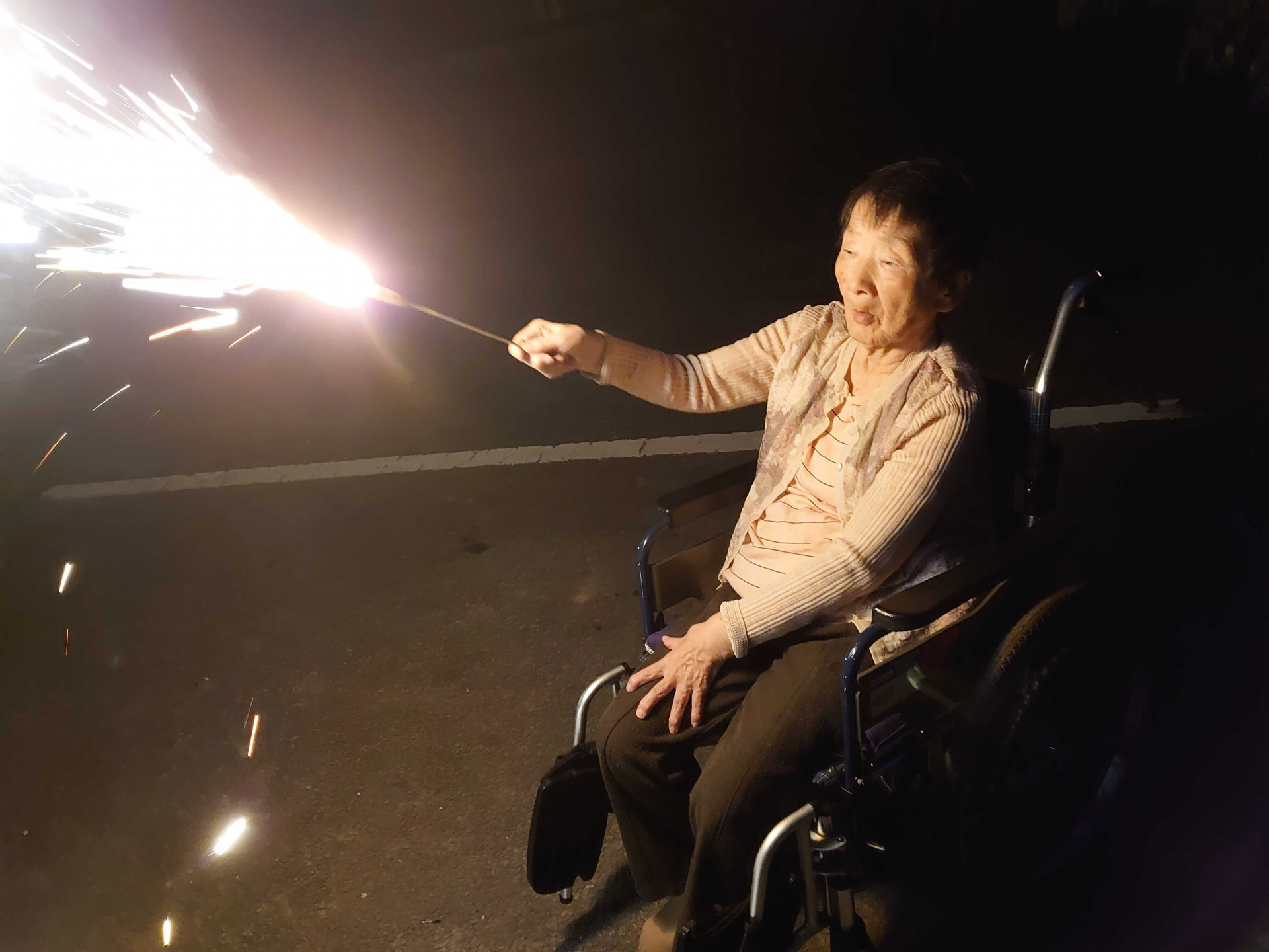花火に慣れてきてノリノリで花火を上下に動かして動きを楽しんでいる