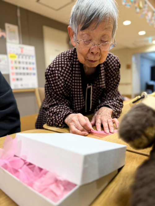 春のレクリエーション:さくらの花びら作り