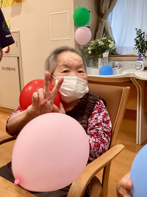2025.07.11 曇り空も吹き飛ばす!グループホームでのバルーン遊び 活動報告 #レクリエーション活動 #レクリエーションゲーム #GHつばめの里・本町東 #GHつばめ #グループホーム #つばめの里グループホームレクリエーション #風船で遊ぶ
