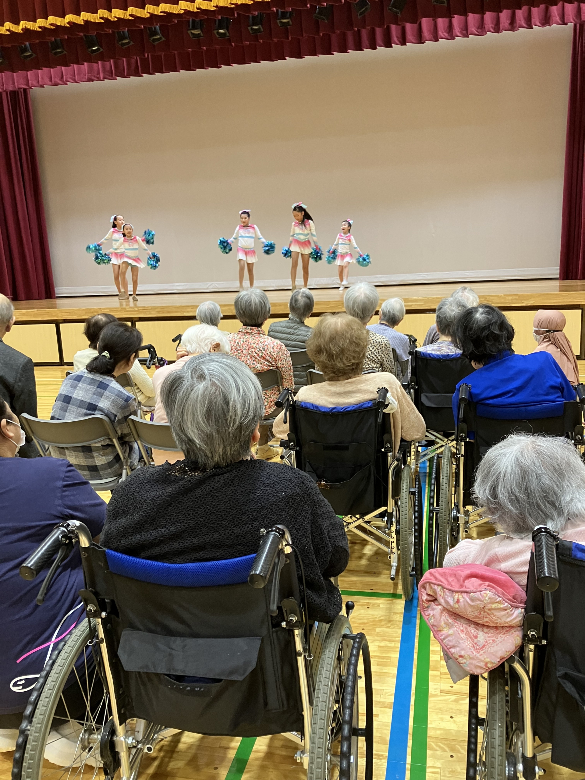 イベントでは、子どもたちと地域の大人たちによる元気いっぱいのダンスやチアのパフォーマンスが披露され、会場は笑顔と拍手に包まれました。おじいちゃんおばあちゃんたちも、手を叩いてリズムをとったり、目を細めてパフォーマンスを見つめたり、会場中に温かい空気が広がっていました。