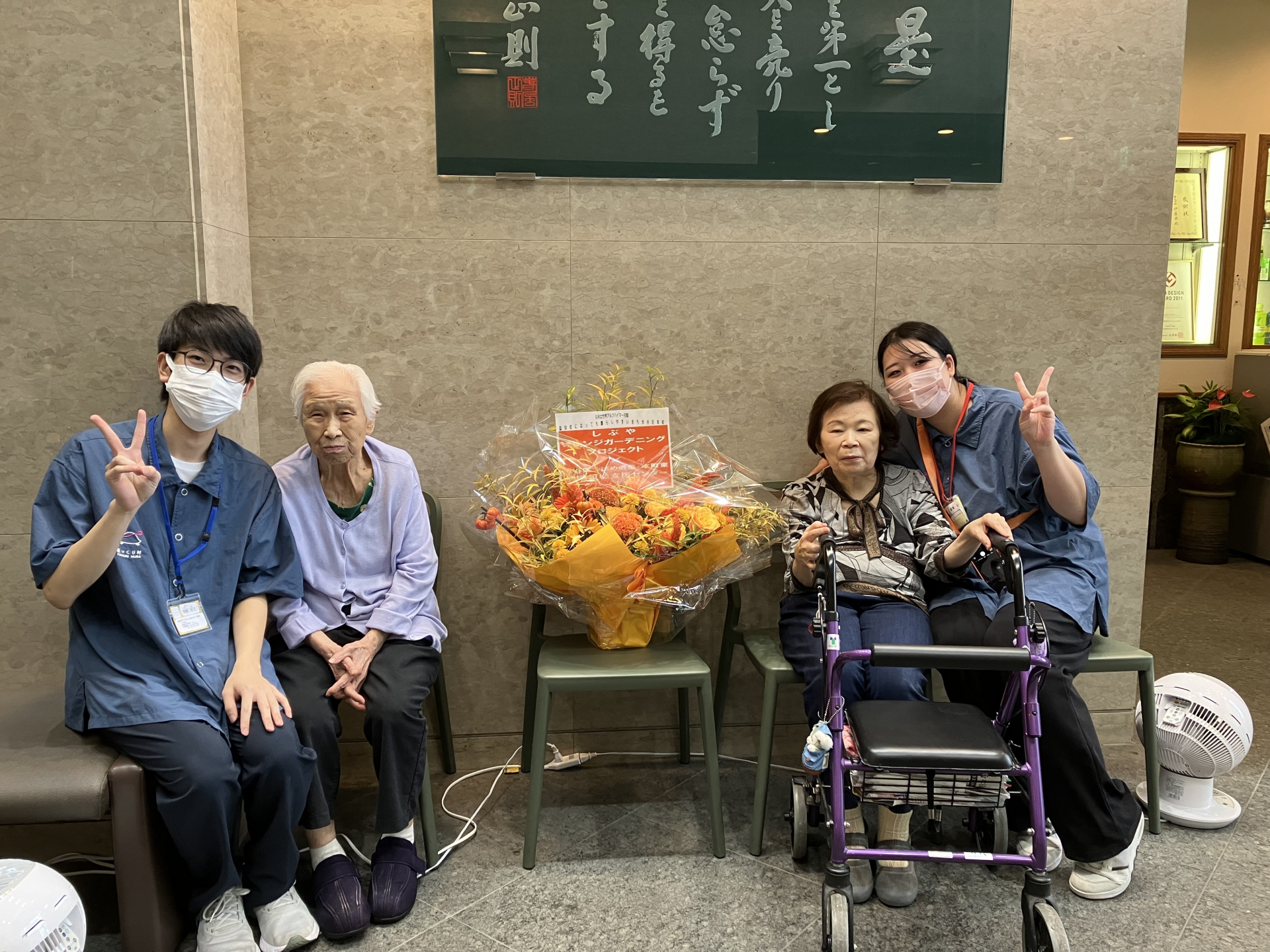 「花束を手渡す瞬間は皆さん自然と笑顔に」なり、ご対応いただいた皆さまから温かい笑顔と励ましの言葉をいただき、利用者さまも大変喜ばれていました。