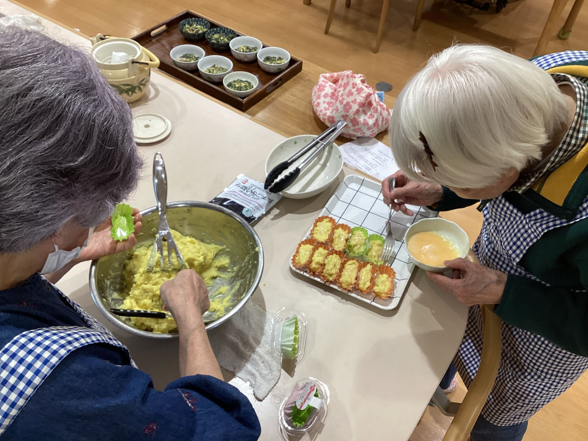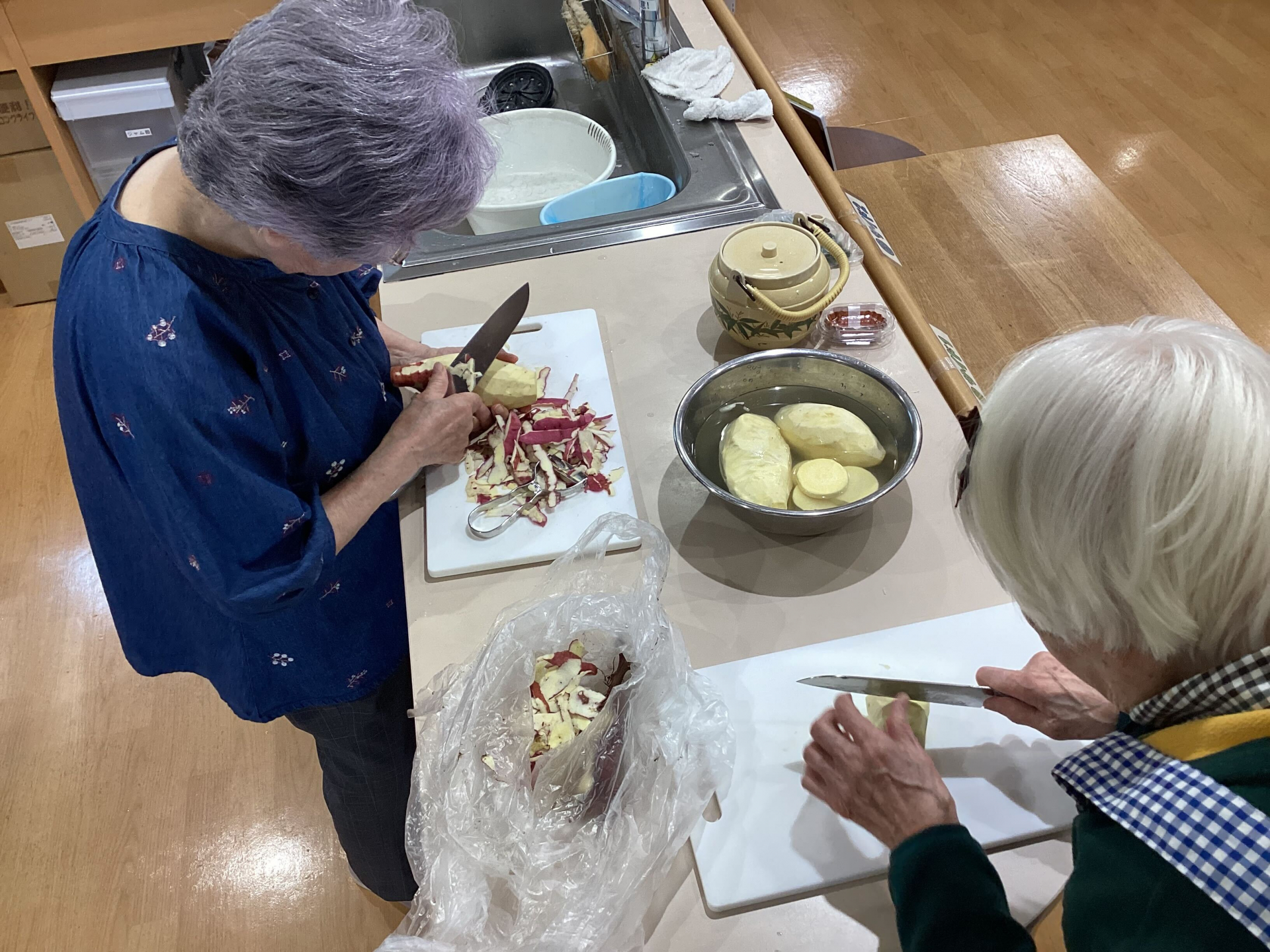 秋フェアの為は、みんなでさつまいもスイーツを作るレクリエーションを行いました。
