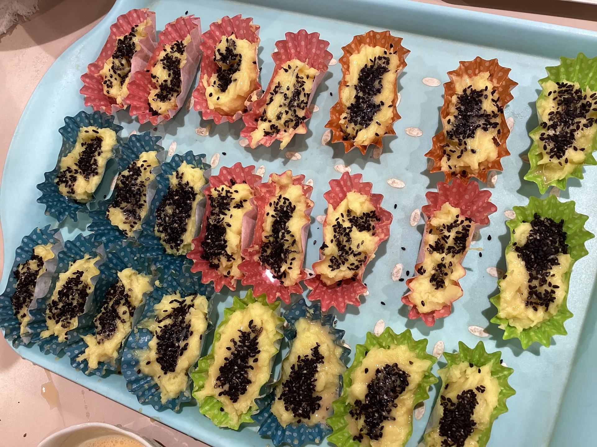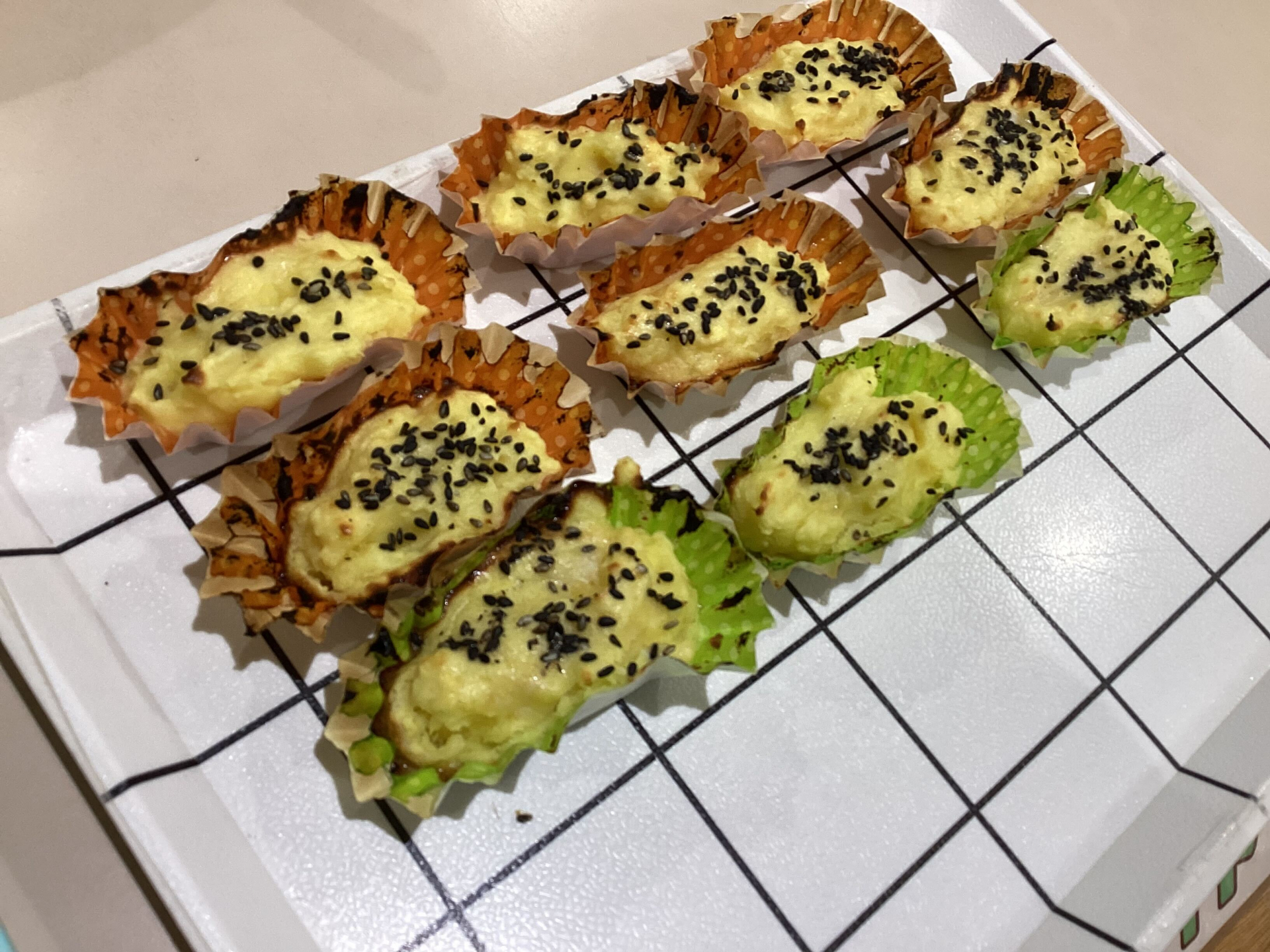 For the autumn fair, we had a recreation activity where everyone made sweet potato desserts together.