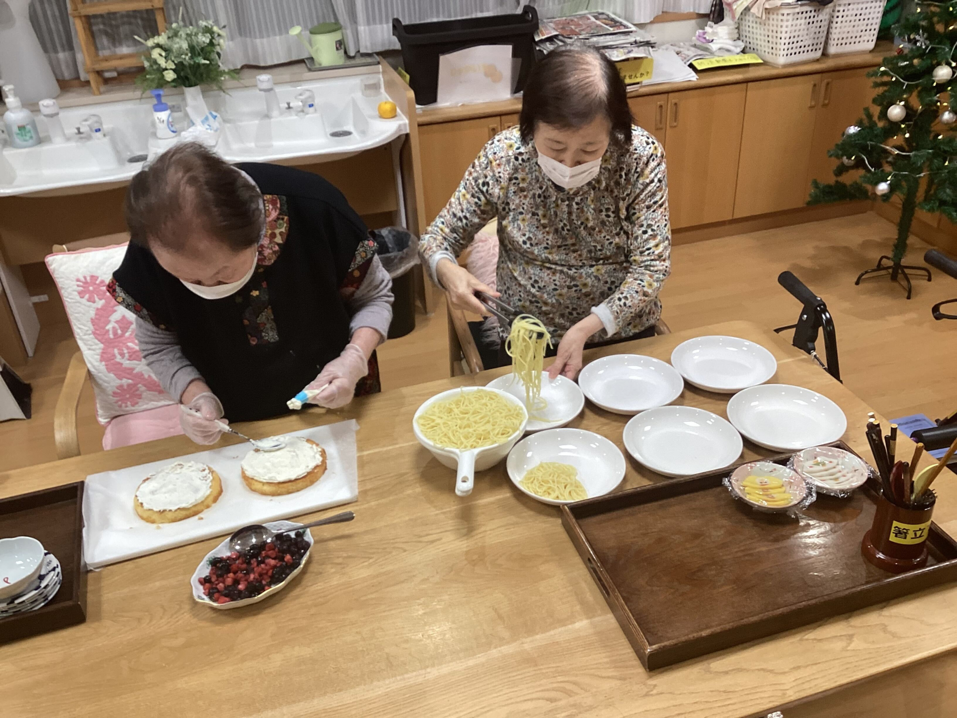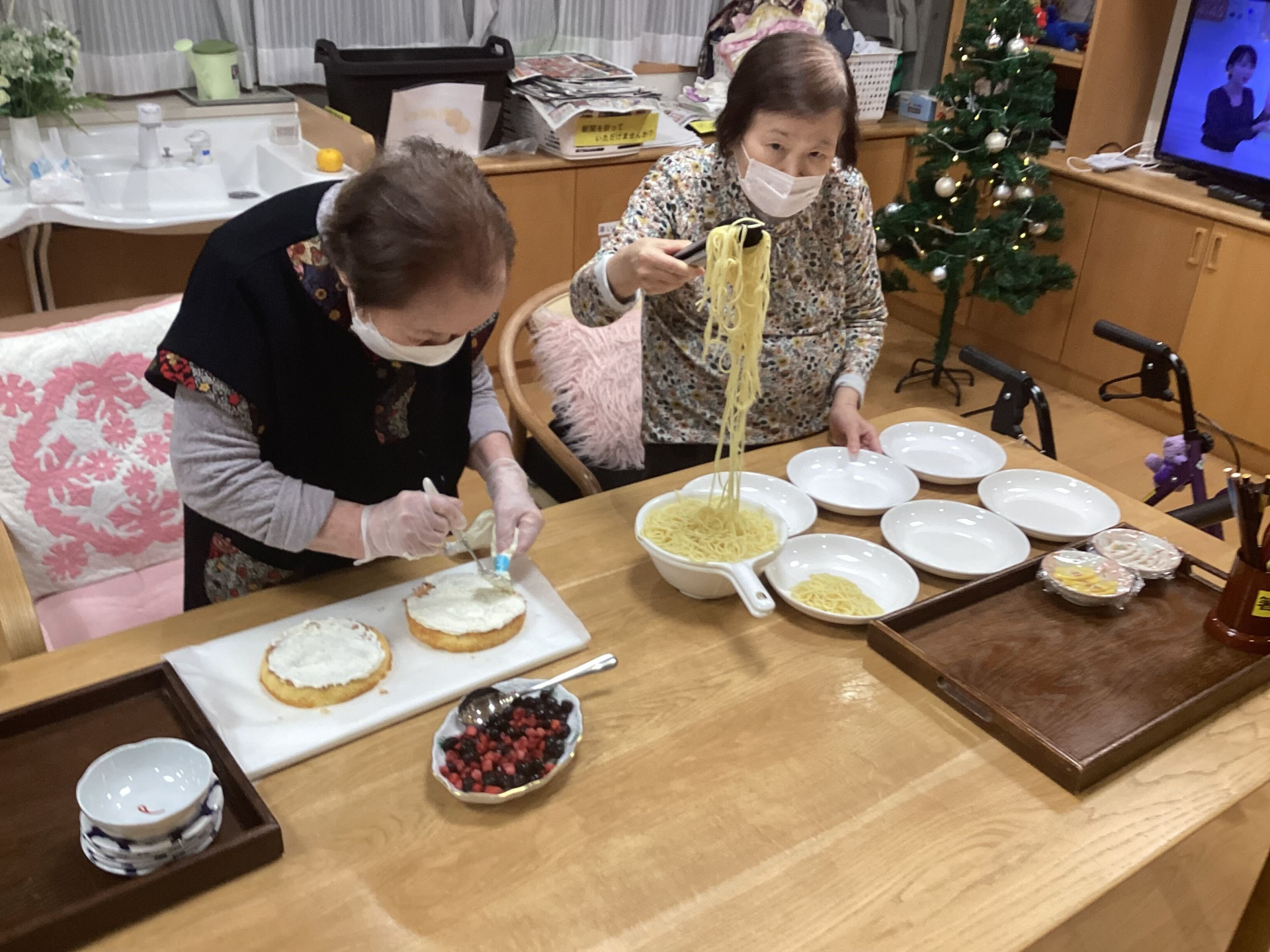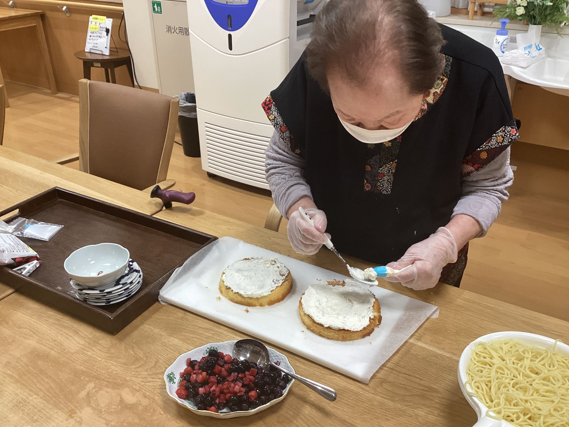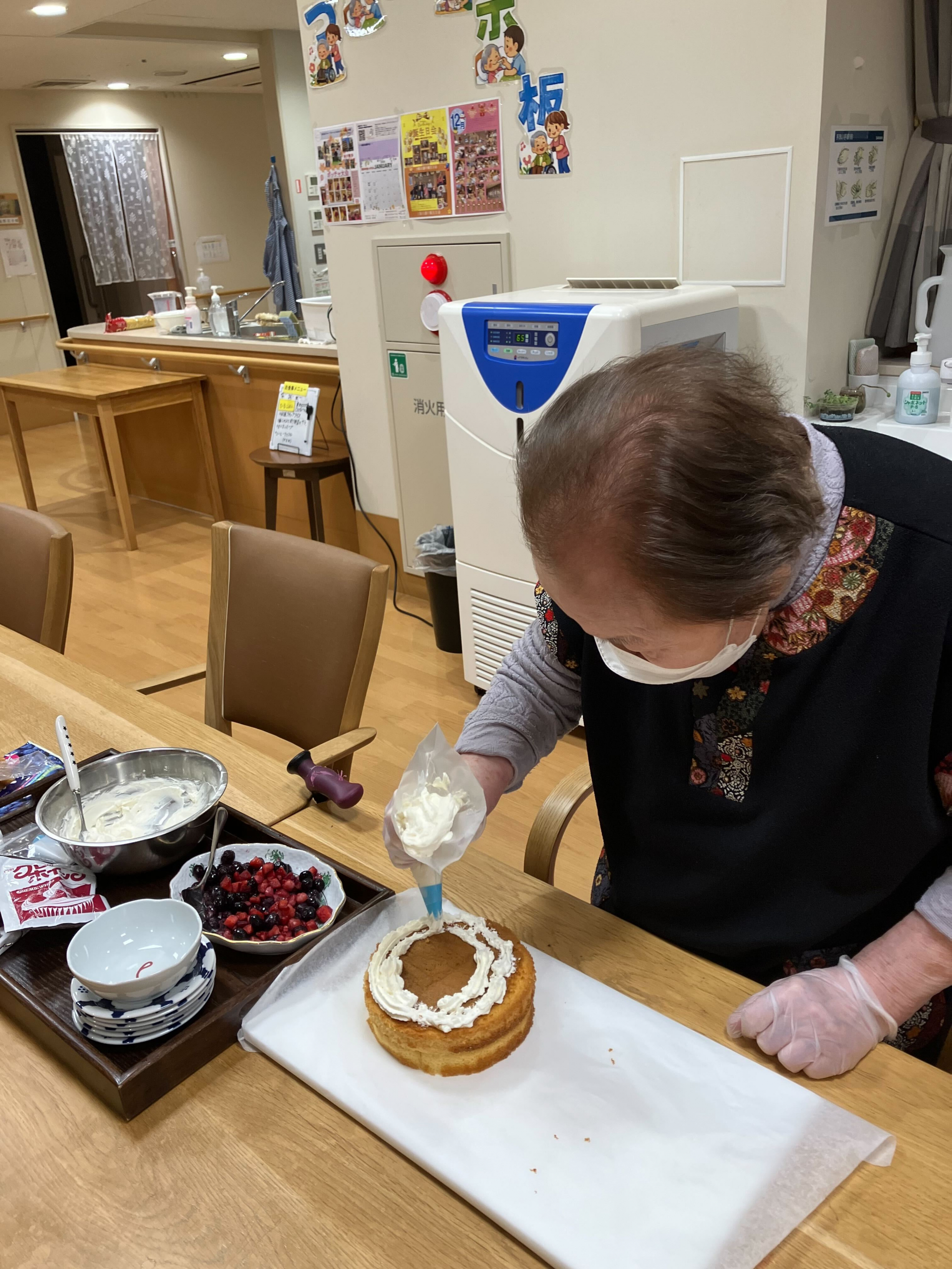 ケーキの生地を混ぜるところから、色とりどりのベリーやクリームで飾り付けをするまで、入居者の皆さんは笑顔と笑い声に包まれながら参加しました。