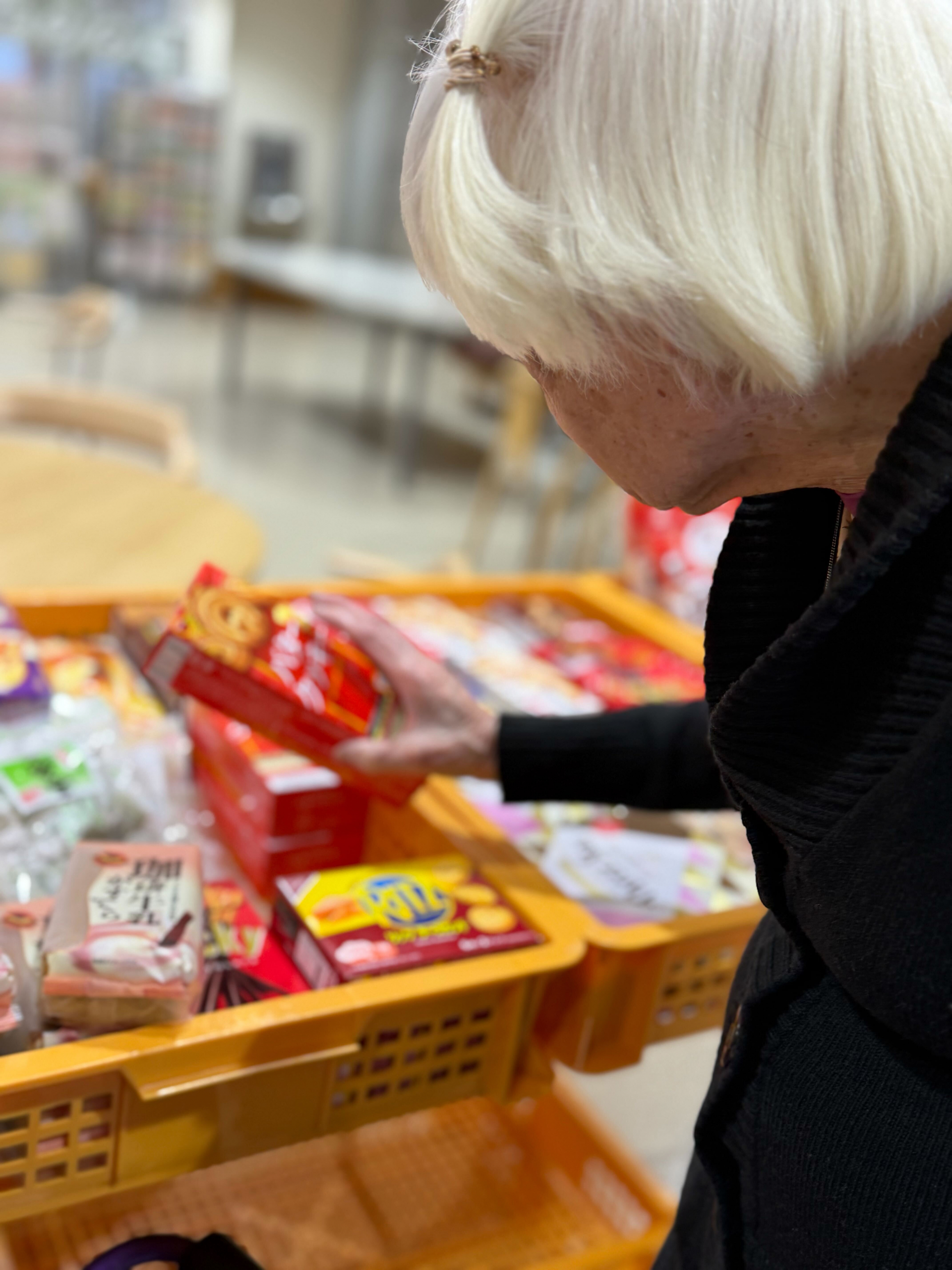 また別の方は、大好きなせんべいを前に「この味もあっちの味も好きで迷っちゃうね」と、じっくり悩まれていました。その姿に、周りの方も思わず微笑みます。