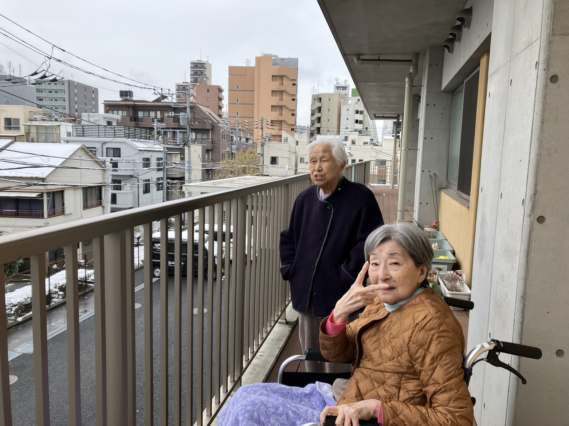 少し寒かったですが、K様とU様と一緒にベランダに出て外の様子を見ました。