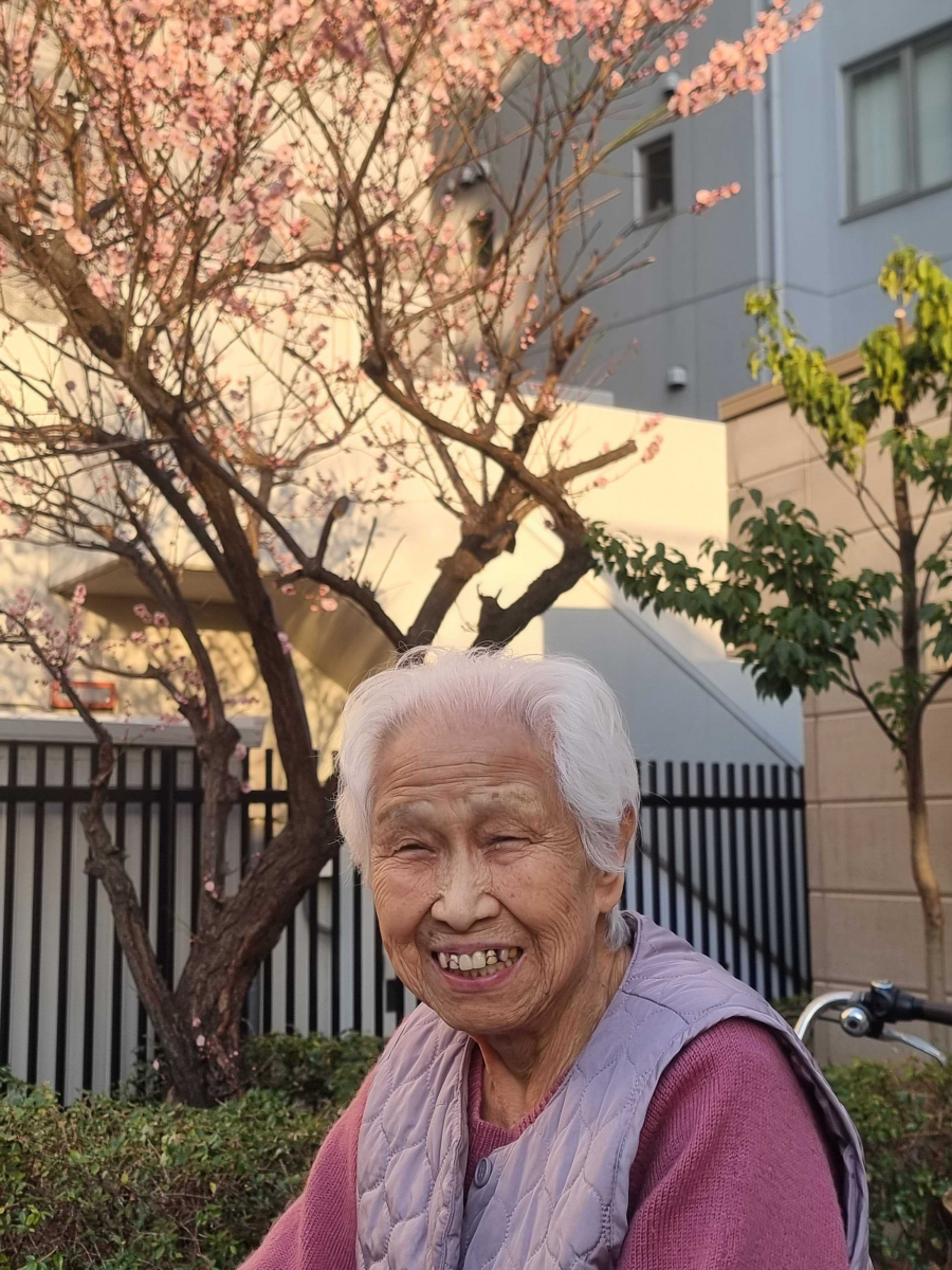 職員が「花が咲いていますよ」と声をかけすると、K様は花を見て「きれいですね」と足を止めて眺めていらっしゃいました。