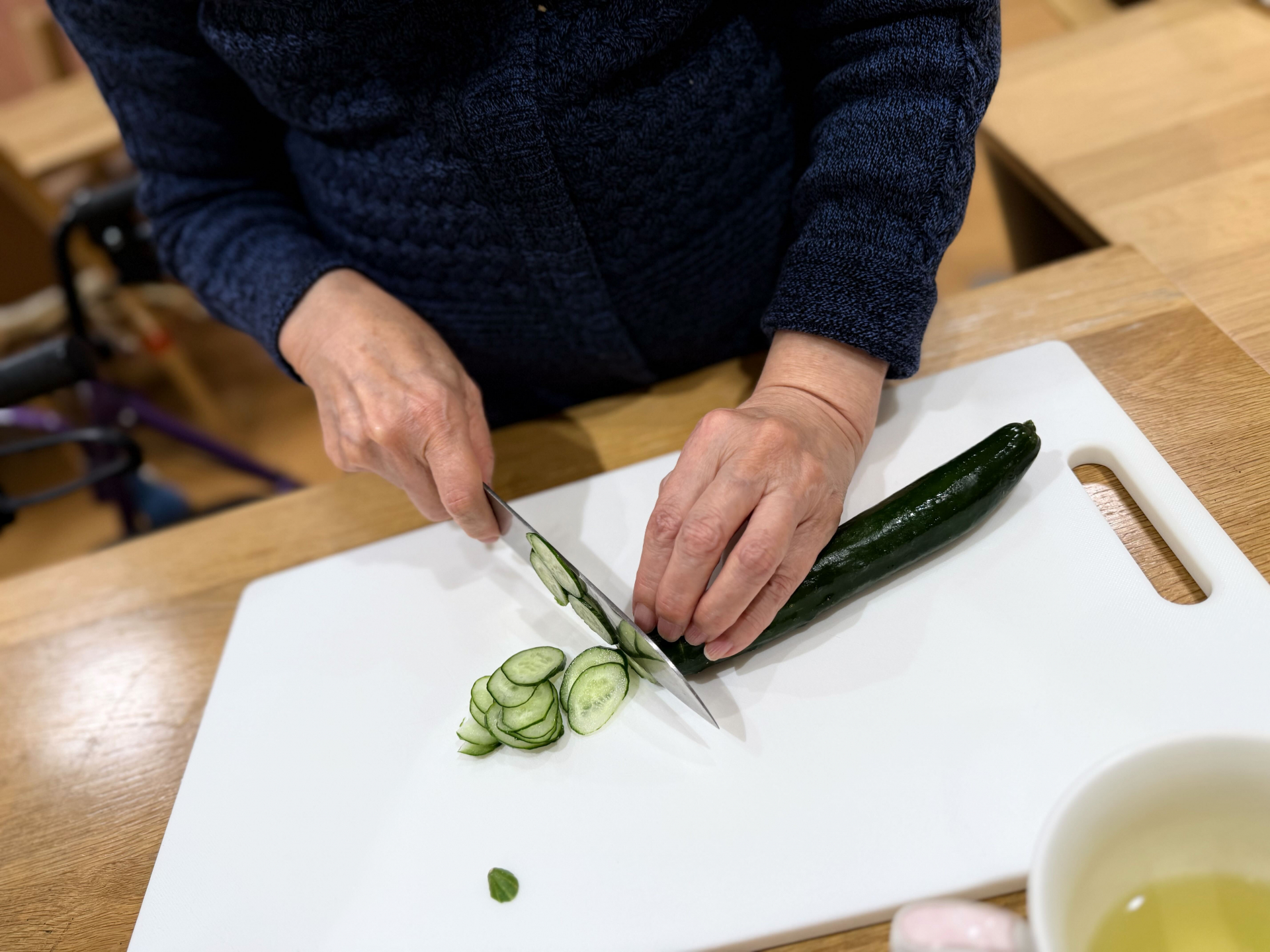 こうした調理の時間は、単なる食事の準備にとどまらず、認知症予防の活動(認知症ケア)としても大切な役割を持っています。野菜を切る、皮をむく、盛り付けるといった一つひとつの動作は、手先を使い、段取りを考え、記憶を呼び起こす良い刺激になります。また、周りの方と協力し合い、会話を楽しむことで、心の活性化にもつながっていきます。