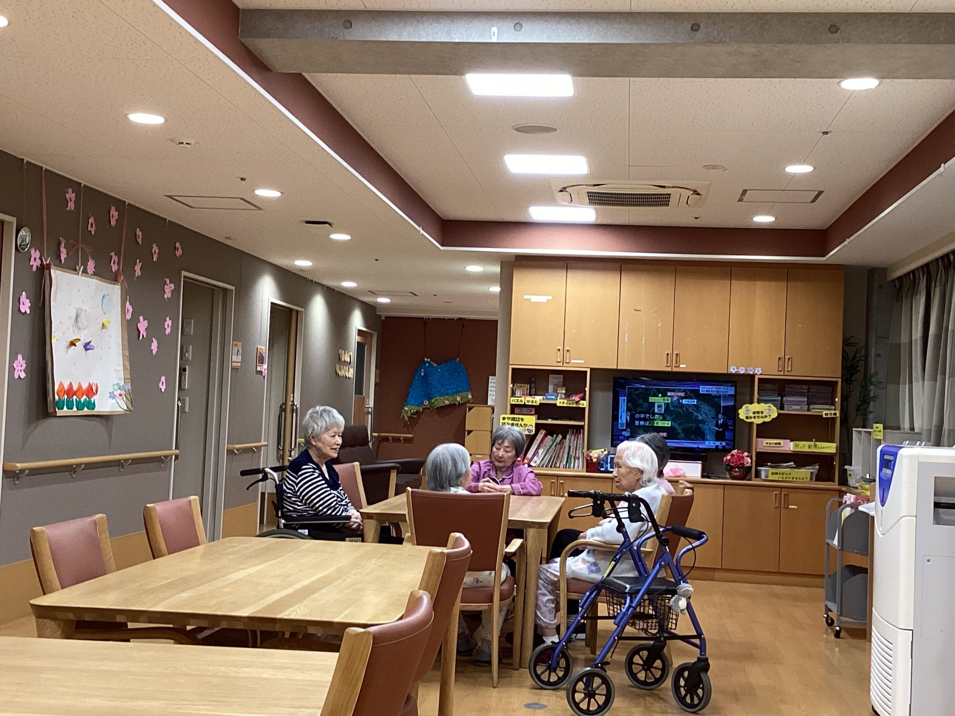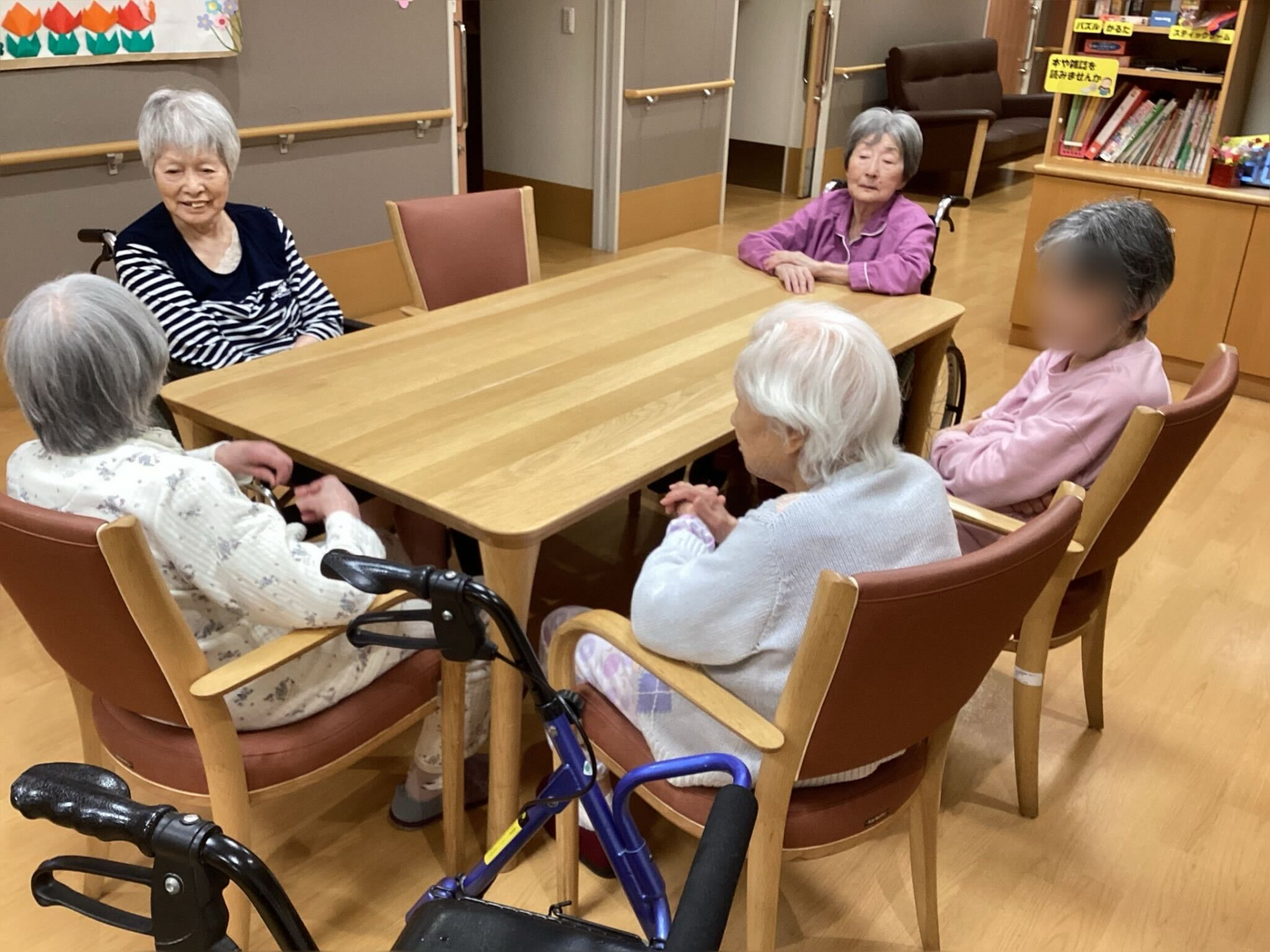 夜、就寝前の時間になると、「つばめの里」では自然とリビングに人が集まり、穏やかなおしゃべりの時間が始まります。誰からともなく声をかけ、少しの間だけ雑談を楽しむ――それは、入居者の皆さんにとって大切な日課のひとつです。