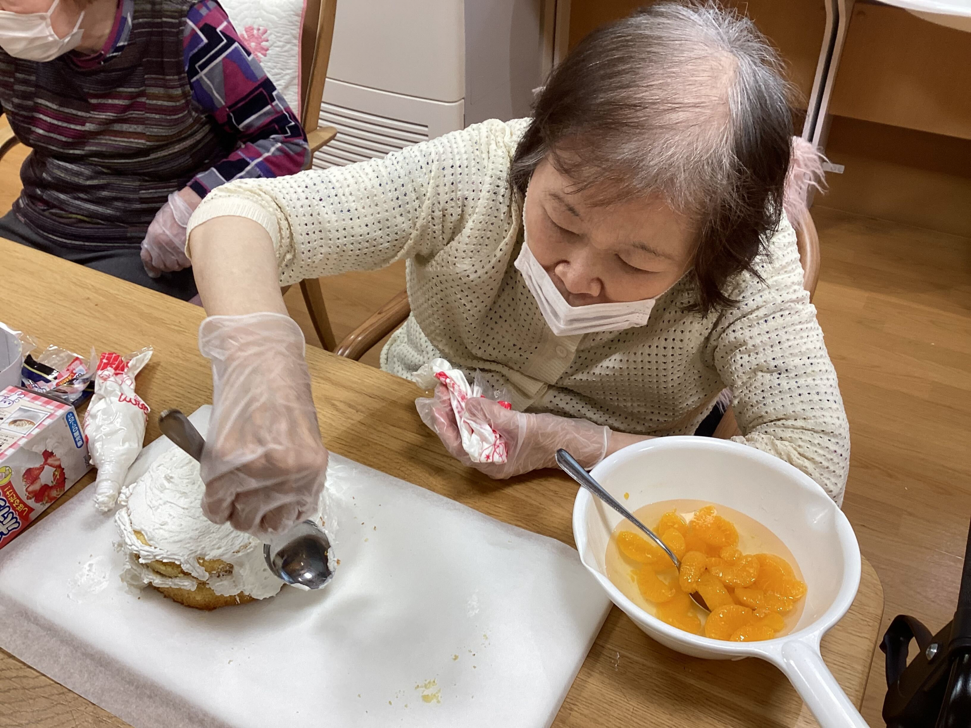 そしておやつの時間には、他のご入居者様と一緒にバースデーケーキ作り