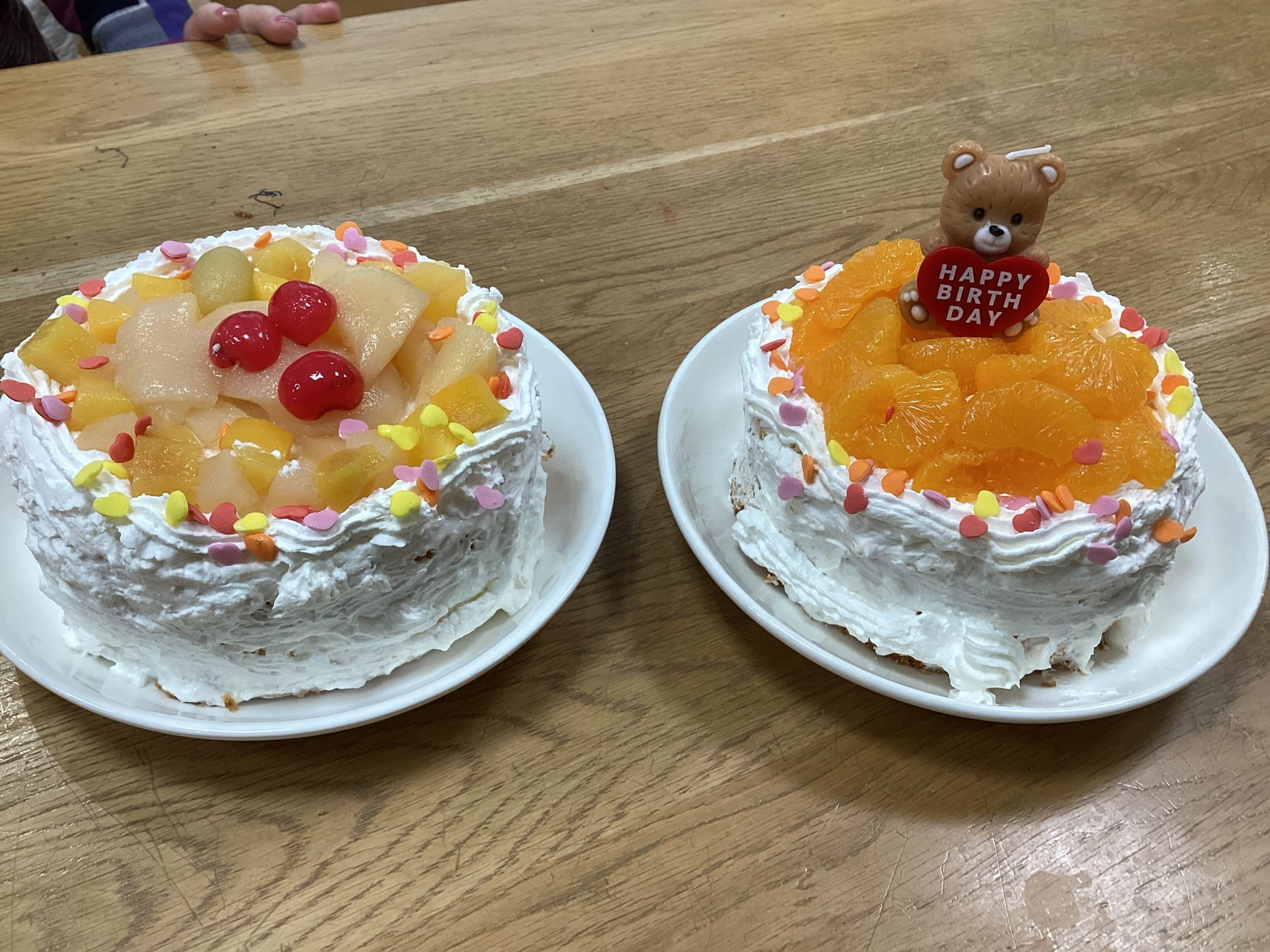 みんなで協力して作ったのは、フルーツたっぷりの盛り合わせケーキです