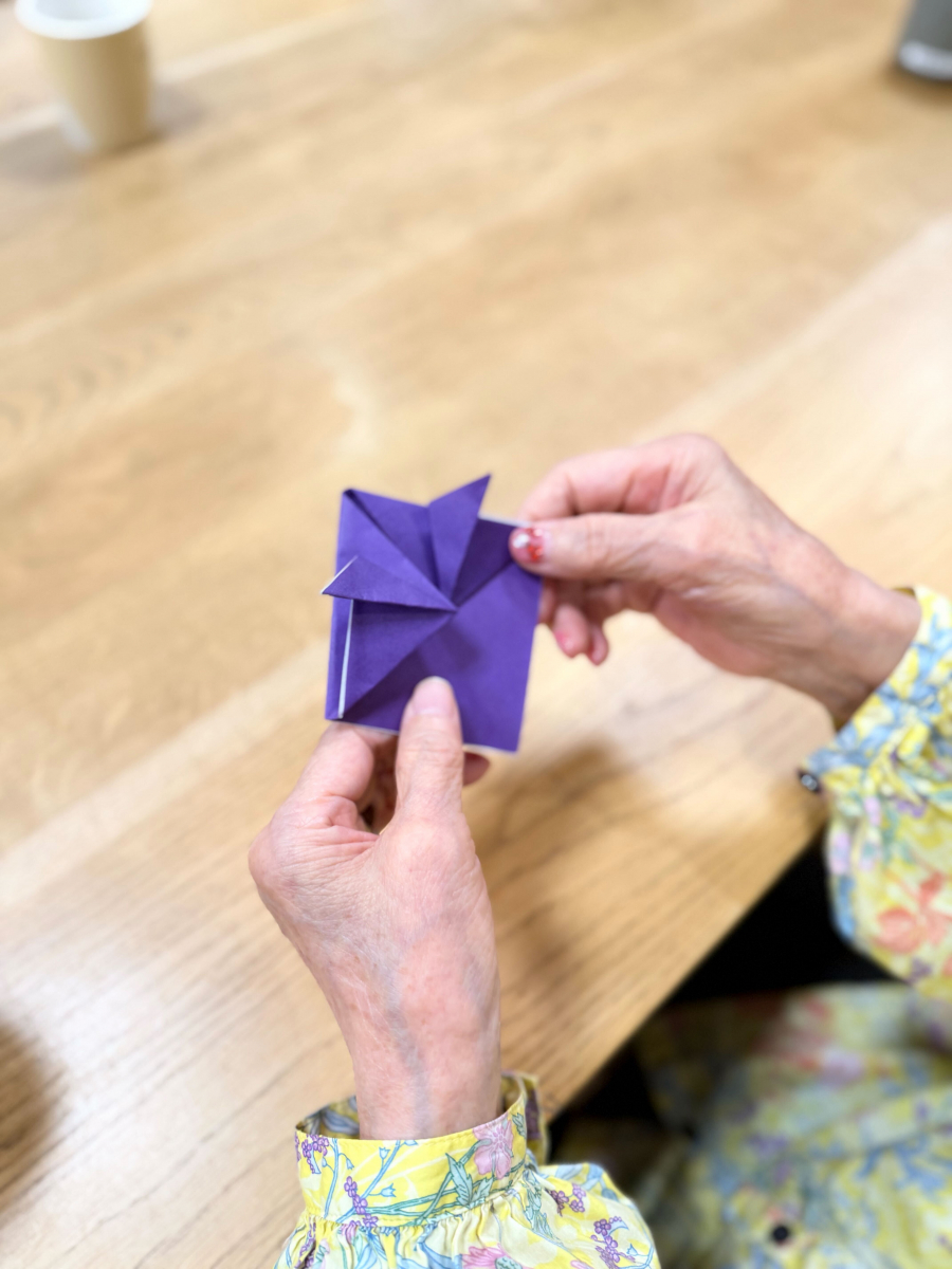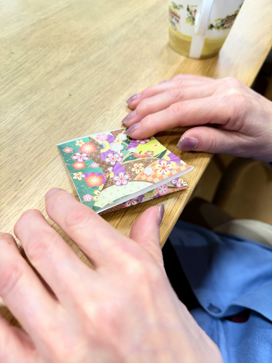 Each resident had the chance to choose their favorite paper—some picked traditional Japanese patterns, others chose soft pinks and violets, and a few were drawn to shiny gold.