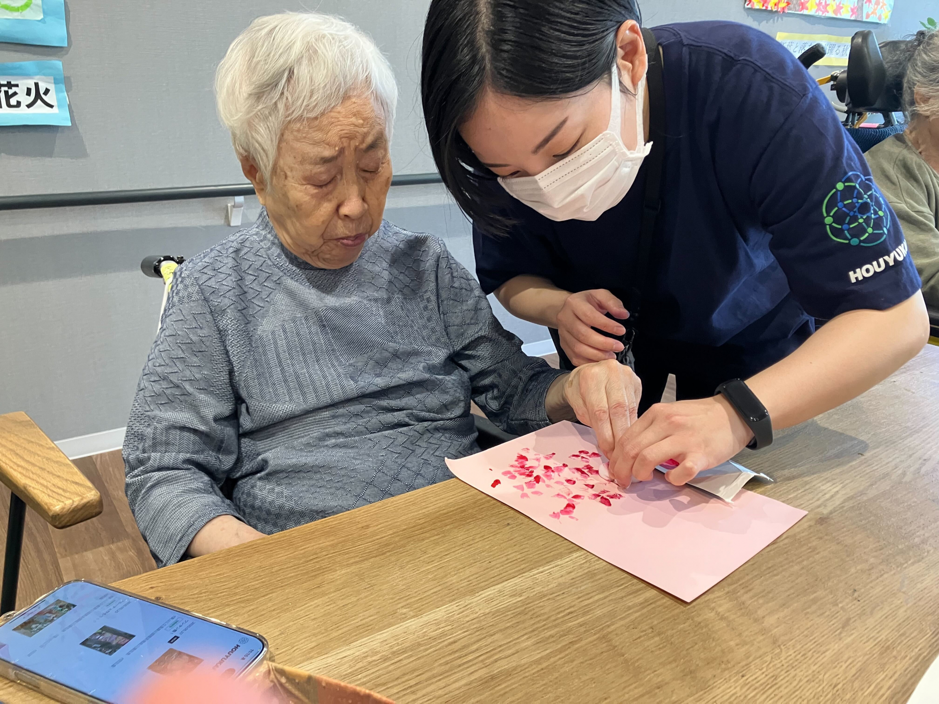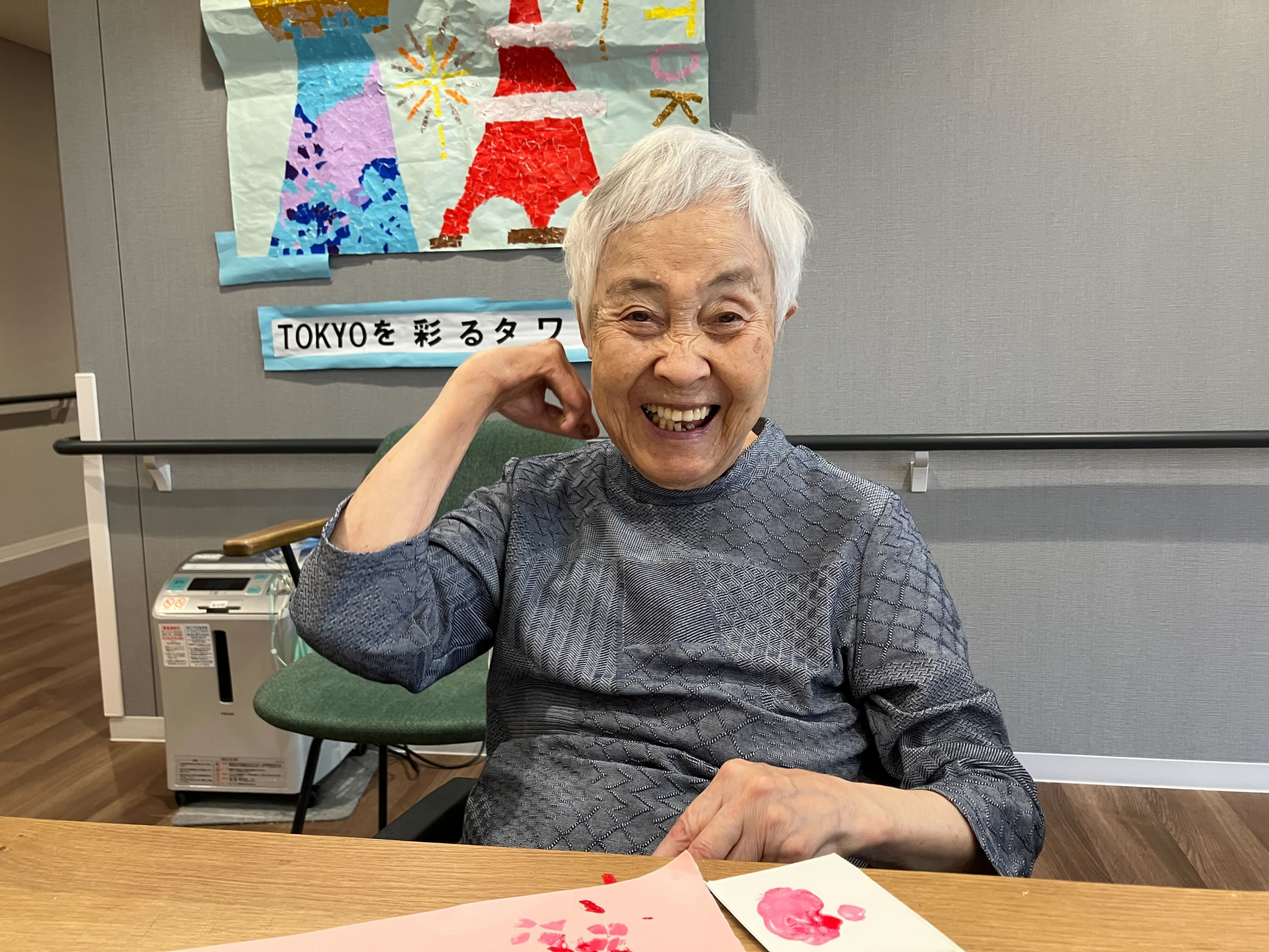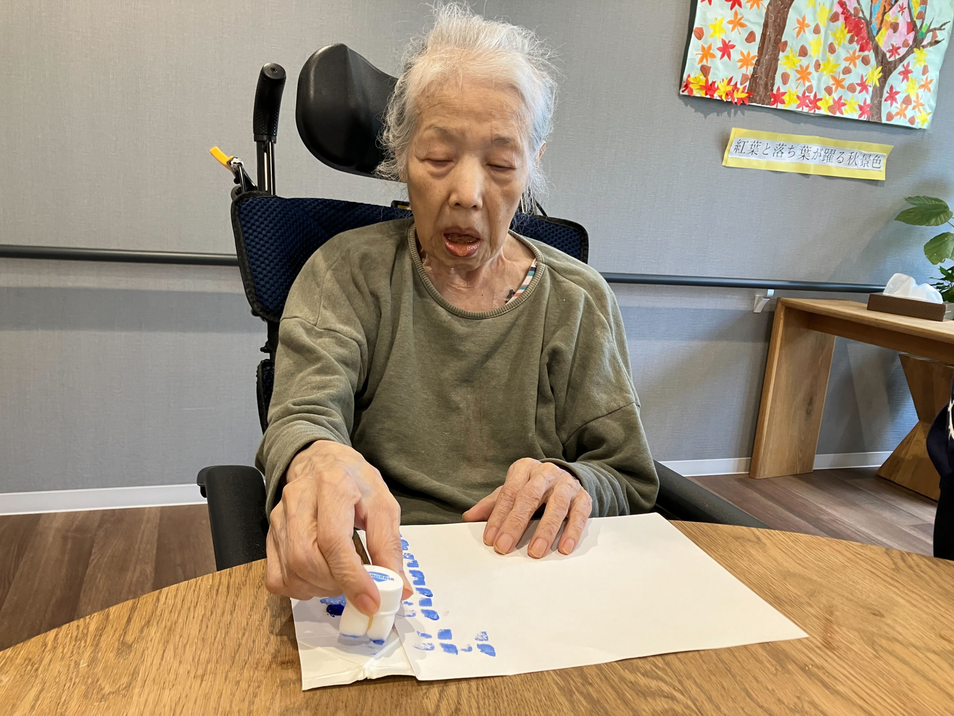 スポンジに絵具を塗って上手にぺたぺたとスタンプしています^ー^