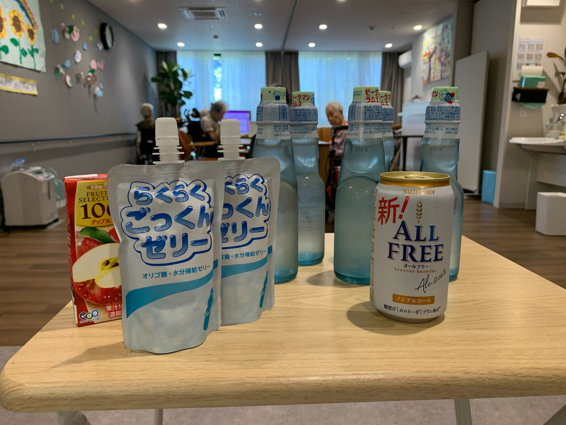 9時半全体放送で「カンパイ!!!」の合図でお祭り開始!ノンアルビールとラムネで乾杯です