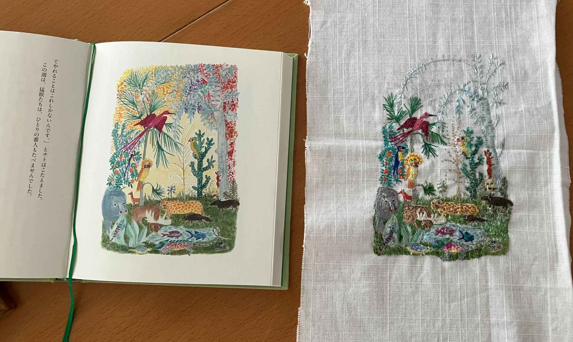 N様お気に入りの本の挿絵の刺繍( ◍•㉦•◍ )動物がいっぱいでとっても素敵です!