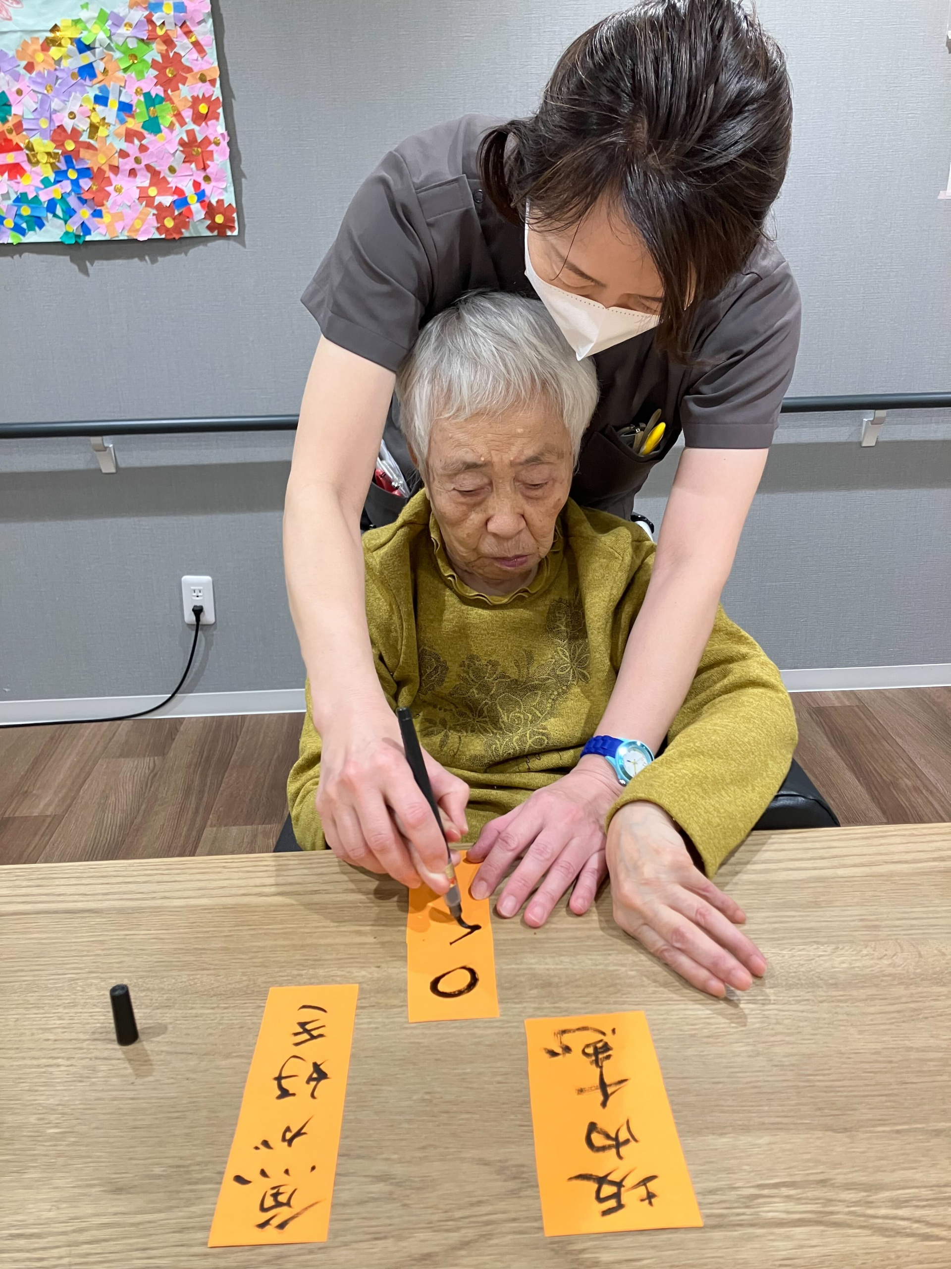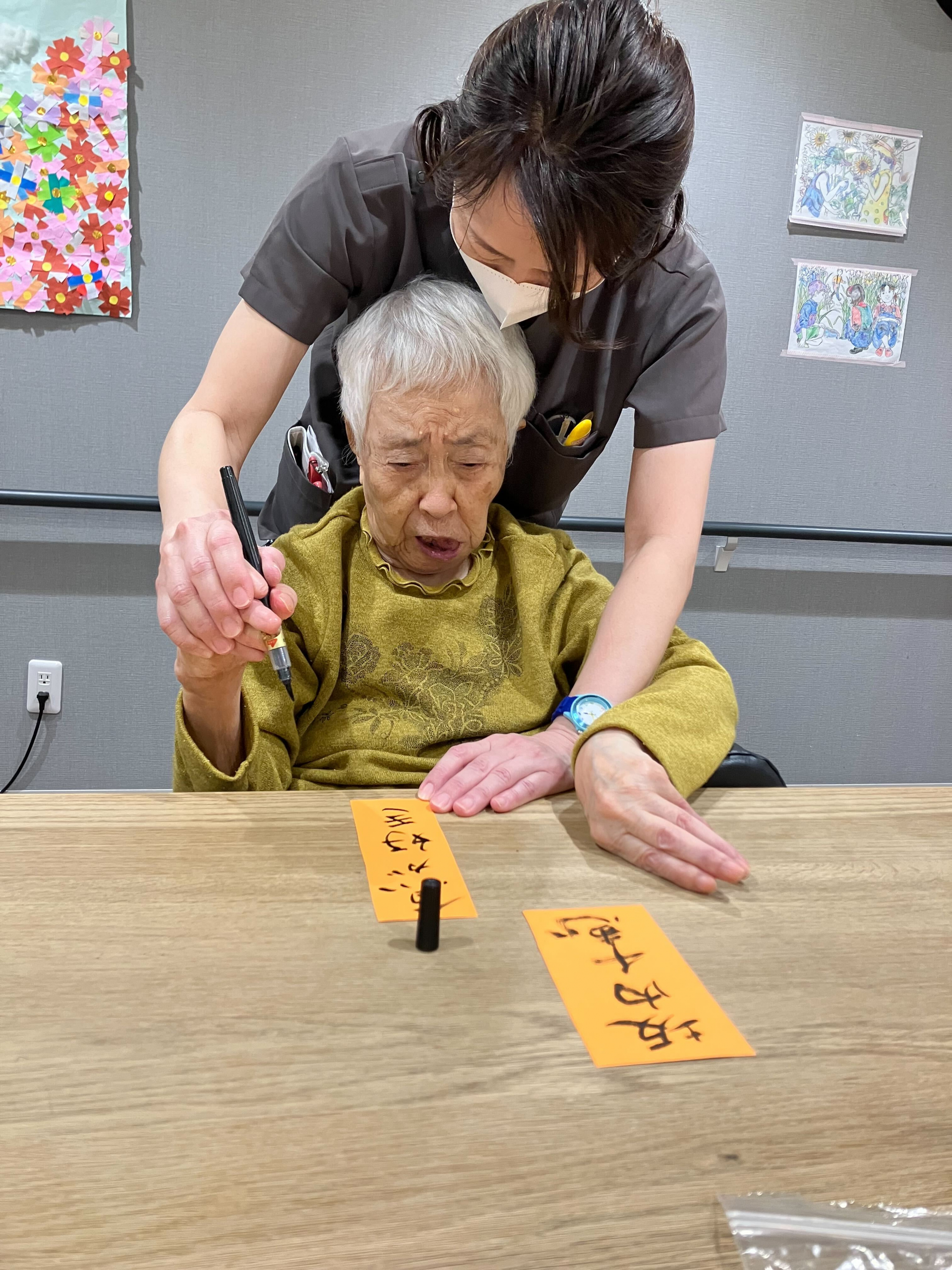 今日S様は看護師さんと一緒に楽しく書道をやりました。🙌😍👩⚕️