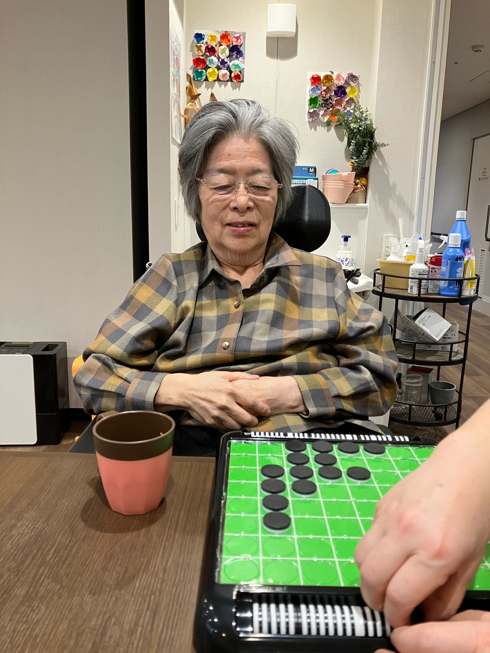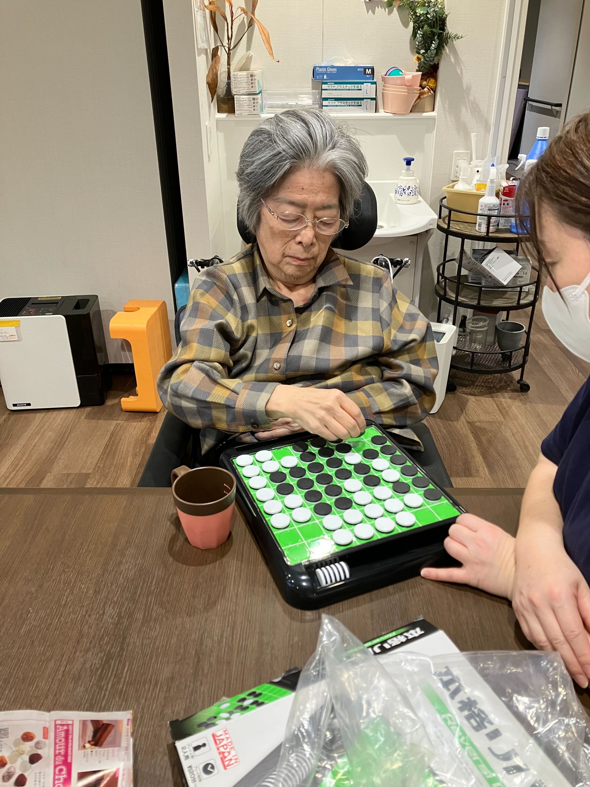 今日おやつ後にE様と職員と楽しく本格リバーシをやりました。q(≧▽≦q)