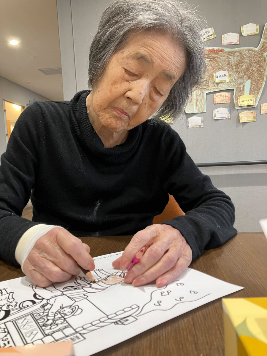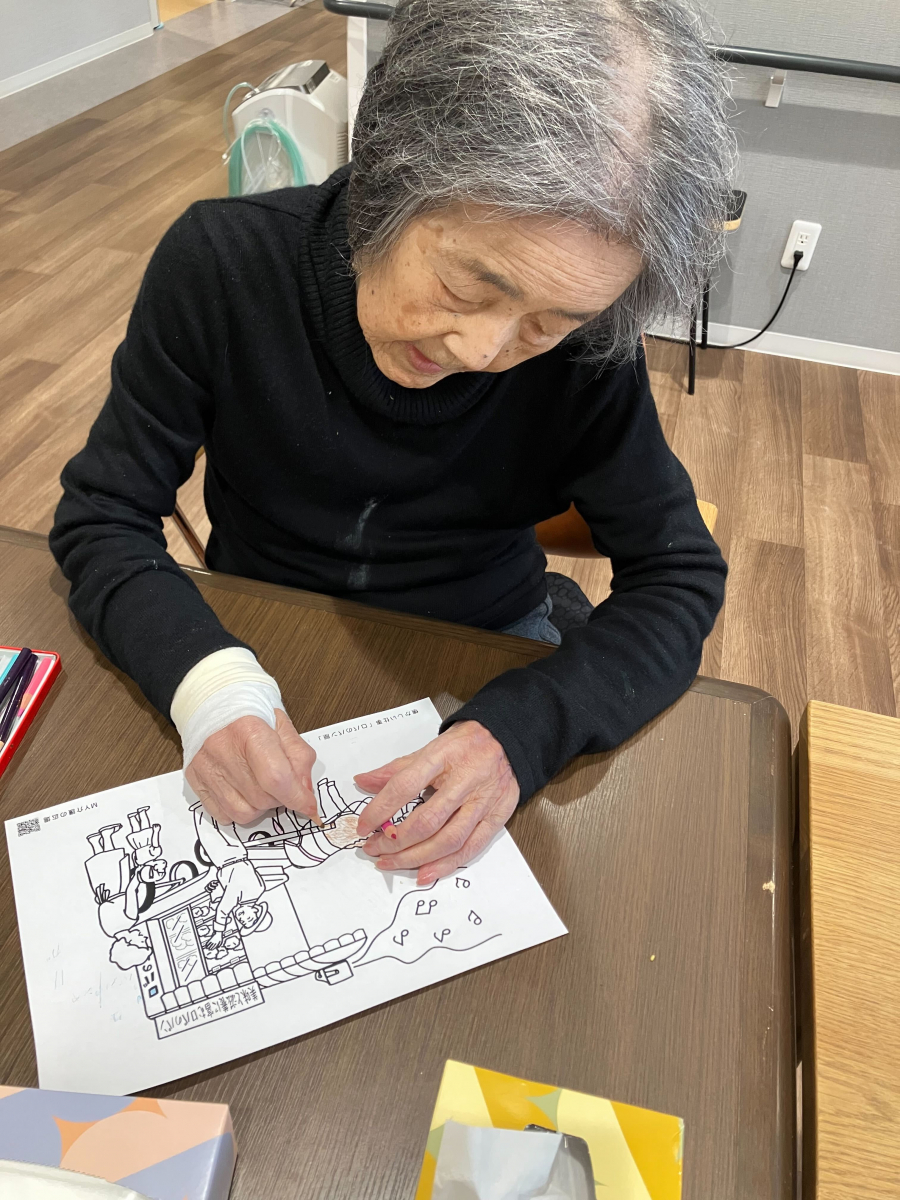 S様珍しく塗り絵をやっていました。ヽ(✿゚▽゚)ノ