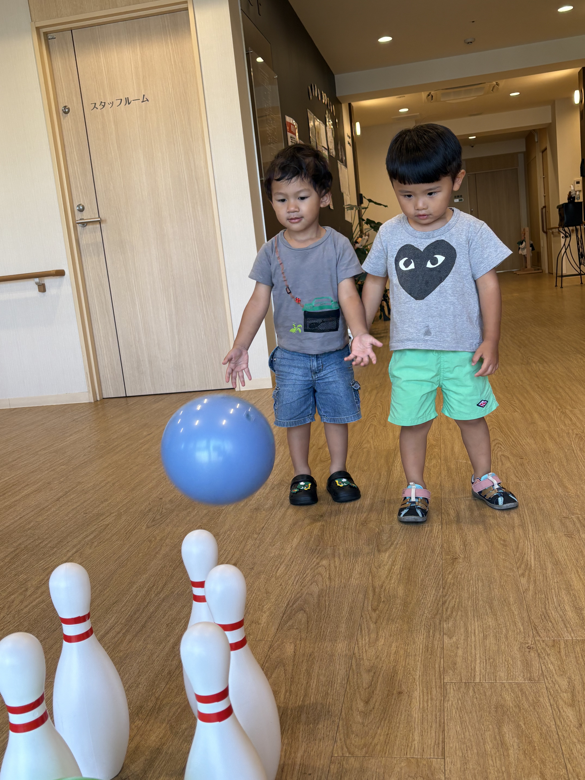 みんな上手にピンを倒せると大喜び!お友だちがやっているときは「がんばれ!がんばれ!」と盛り上げ役になっている子どもたちもいました。