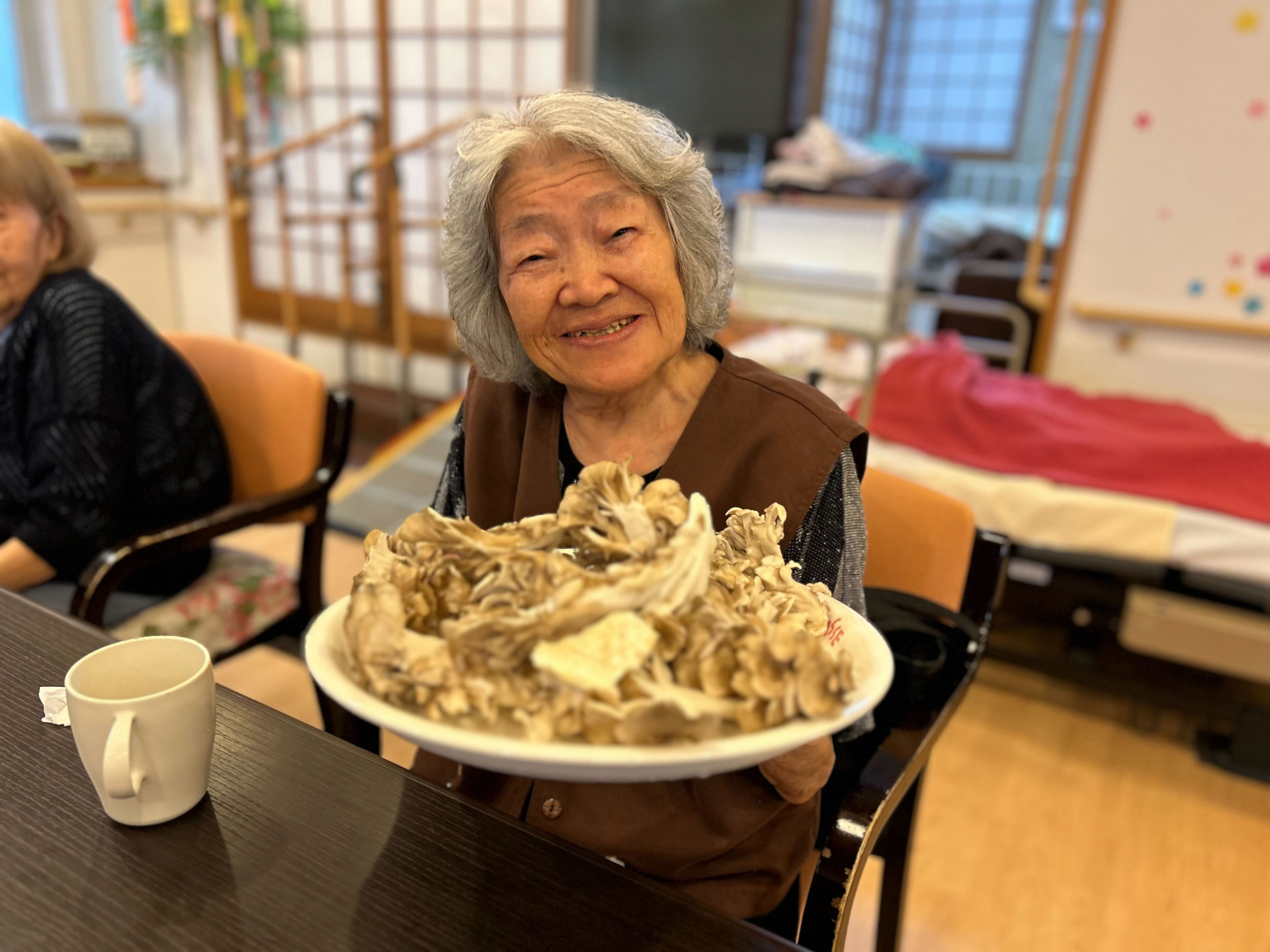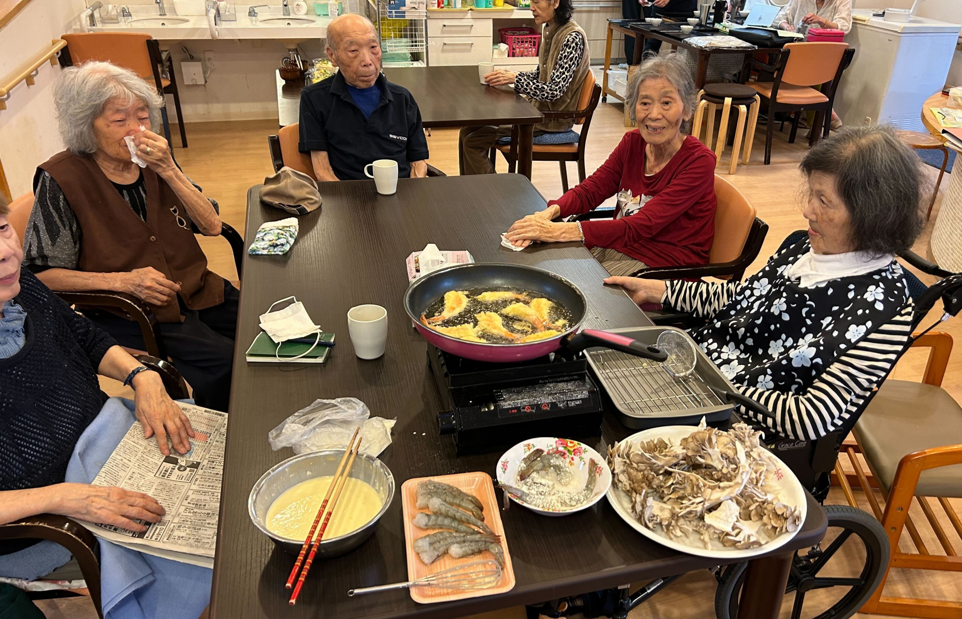 ささ、揚げたての舞茸を堪能してくださいねー