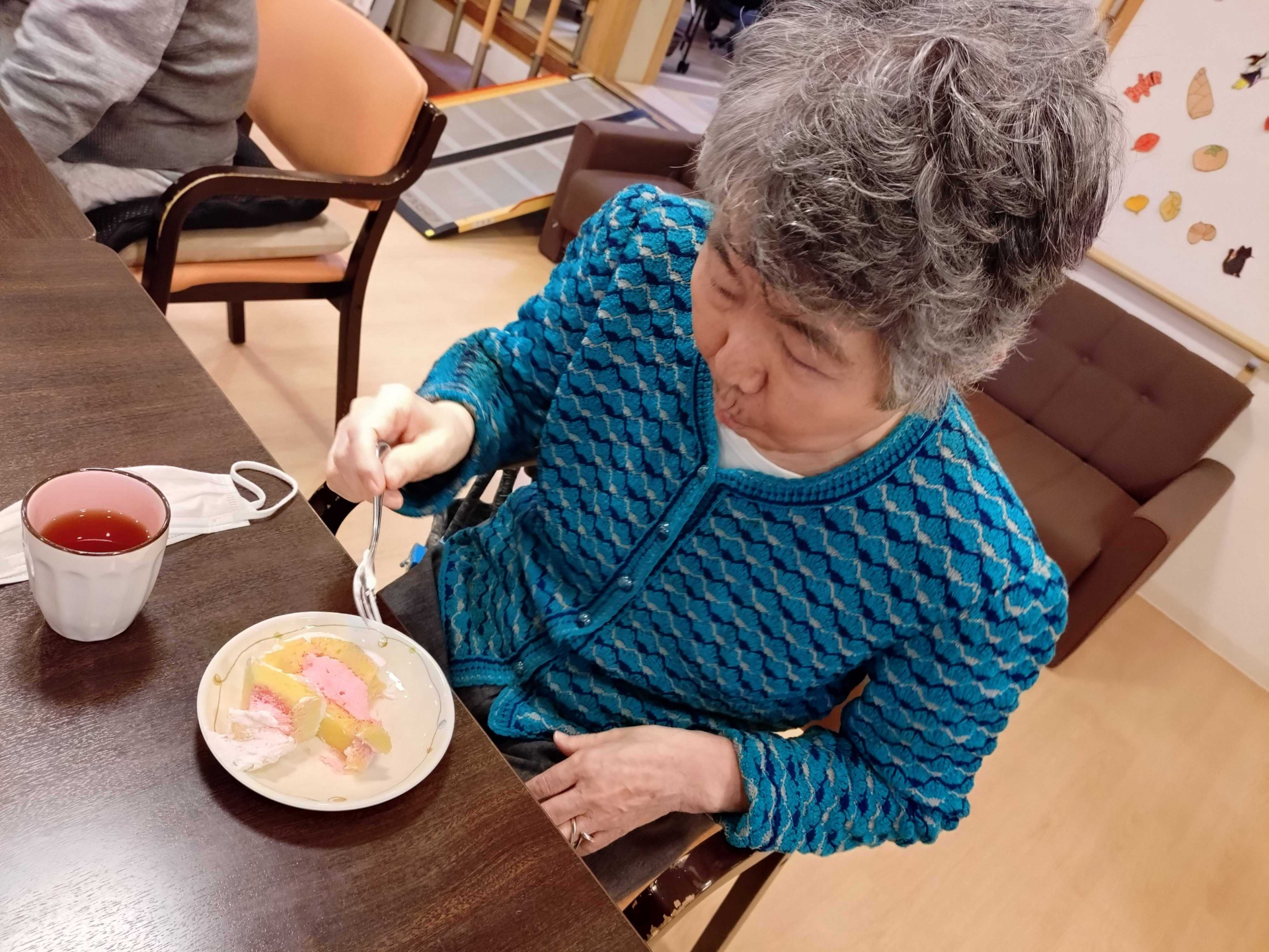 【施設 おやつ】 スタッフがケーキをつくってくれました。