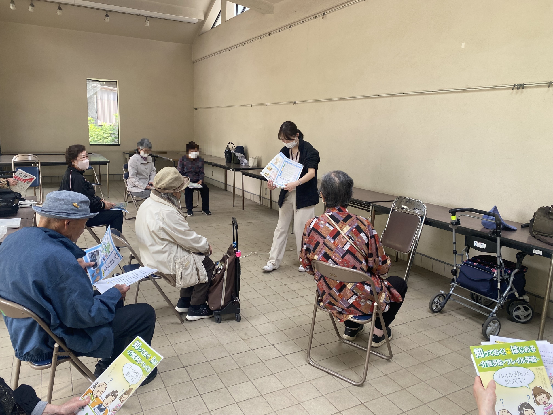 本日は、保健師から「フレイル予防」についてお話をさせて頂きました。フレイルは「虚弱」という意味があり、健康な状態と、要介護状態の間を意味します。