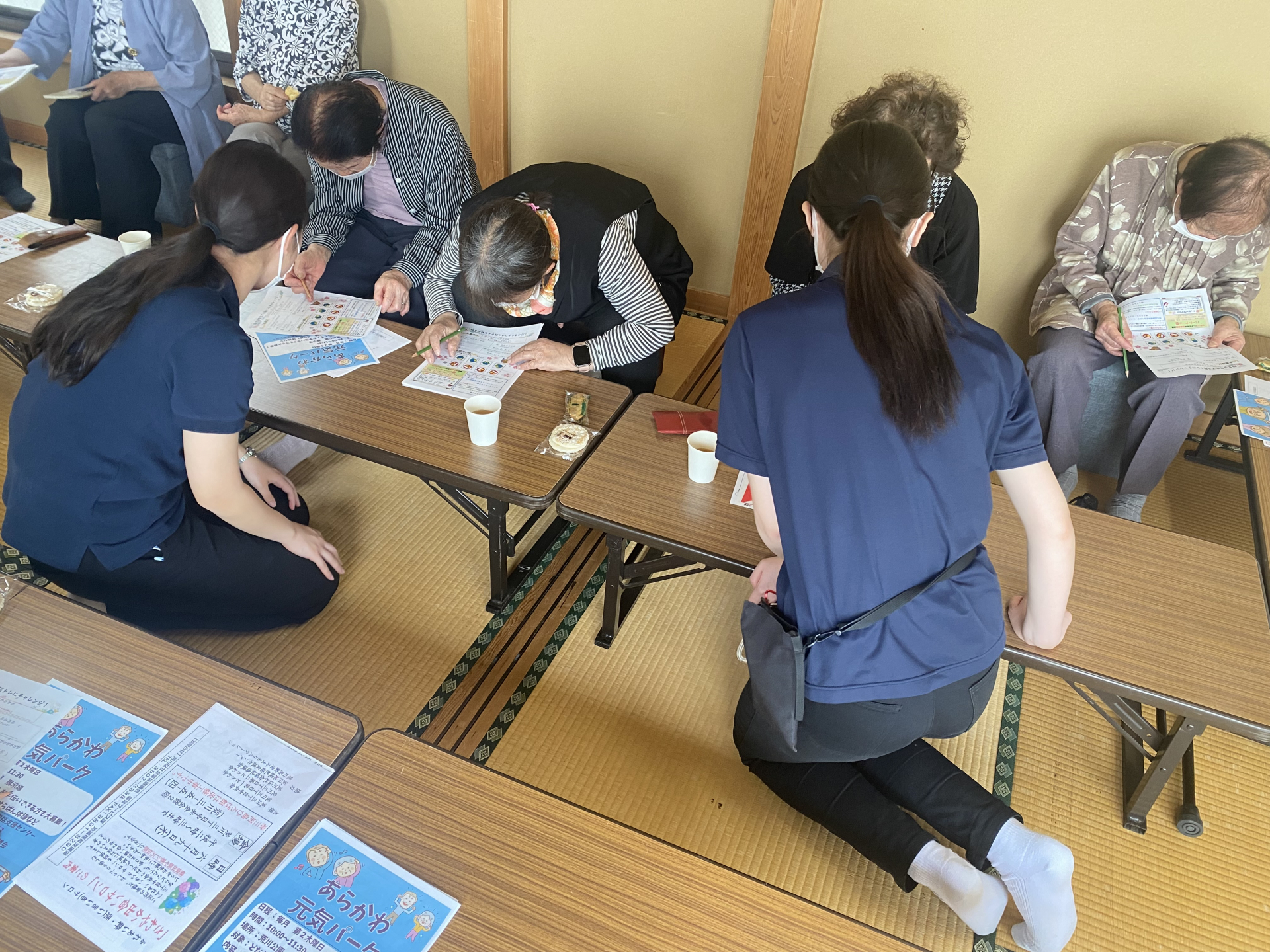 ↑看護学生さんと一緒に脳トレに取り組まれ、和気あいあいとした雰囲気でした。