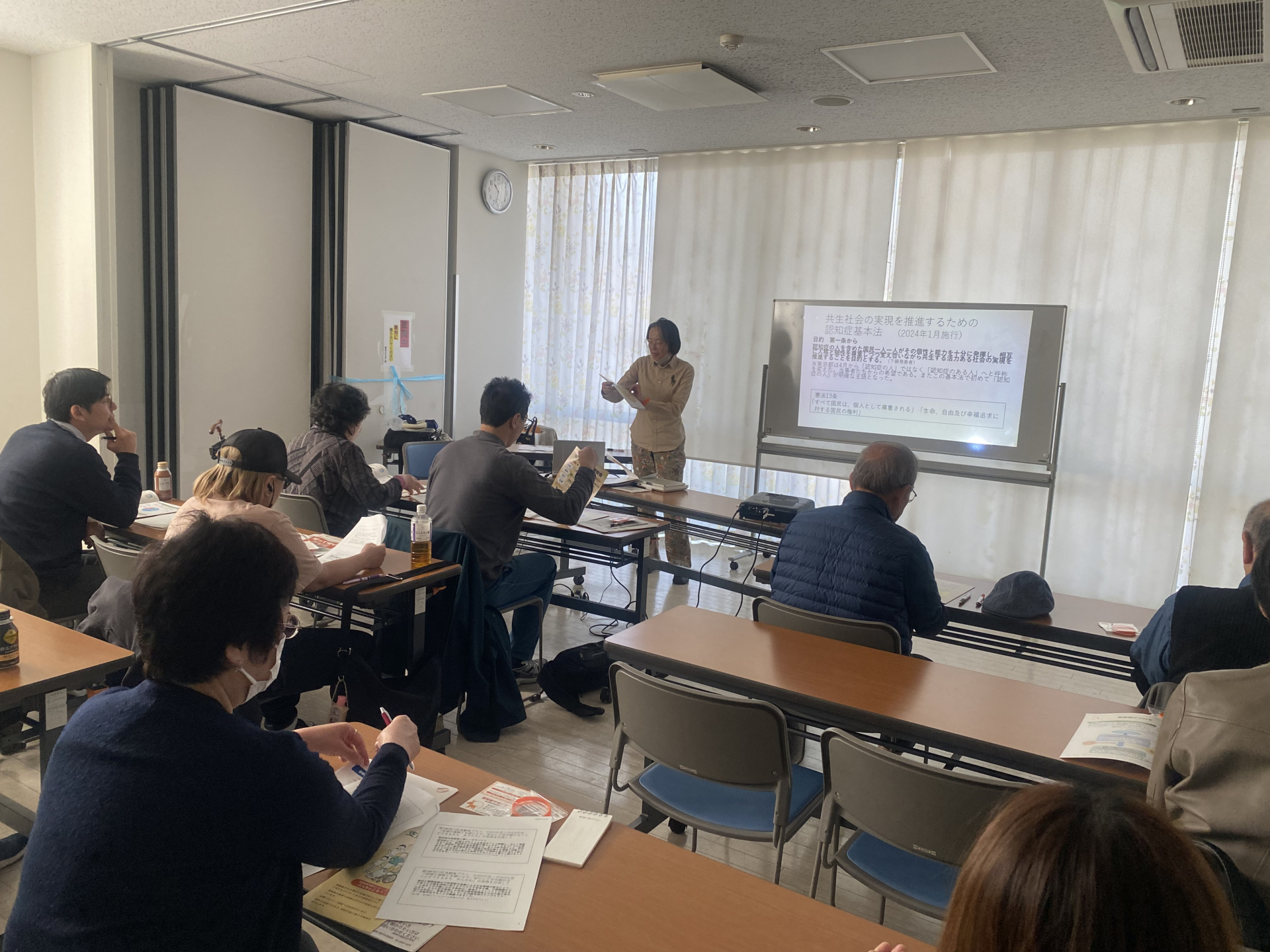 講師のお話から「人生100年時代で言われている中、将来どなたでも認知症になる可能性がある。認知症になっても出来る限り今まで通り生活が出来るように、地域で支え合う街づくりが必要。」と話されており、