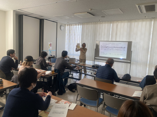 冬季はインフルエンザだけでなく、ノロウイルス等も注意が必要です。参加者の皆様と正しい手洗いについて確認し一緒に行いました。