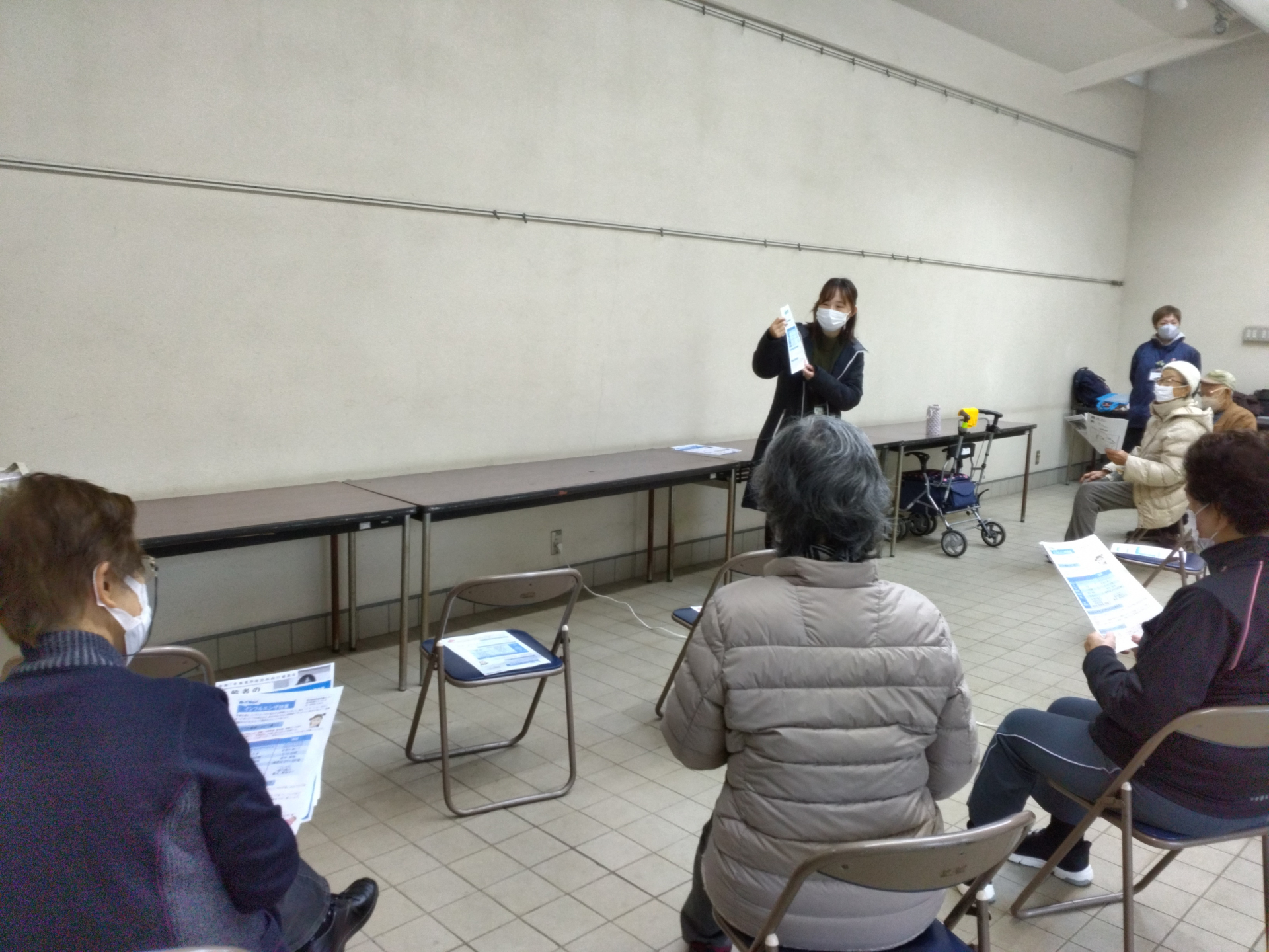 冬季はインフルエンザだけでなく、ノロウイルス等も注意が必要です。参加者の皆様と正しい手洗いについて確認し一緒に行いました。