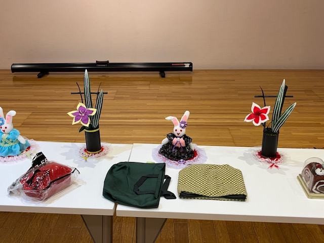 最後には、お楽しみ会で世話人の方の手作りしたお花や人形の作品をプレゼントされて、皆さんうれしそうな笑顔でお帰りになりました。
