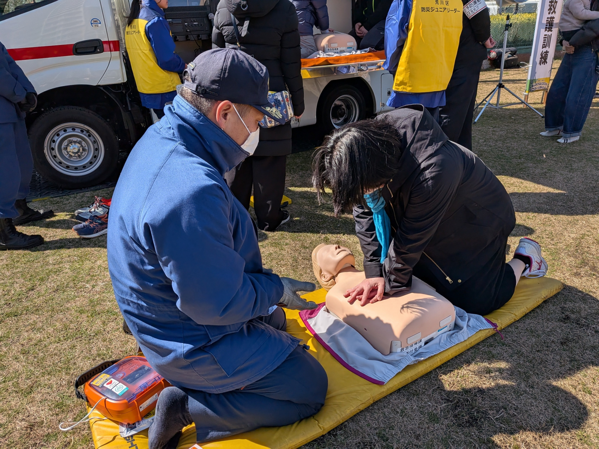 消防署の方では心肺蘇生の体験コーナーがあり、実践してきました。
