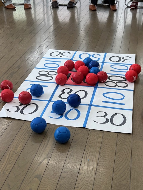 最後はボッチャの競技ルールと同じように白いボールを的に狙いを定めて