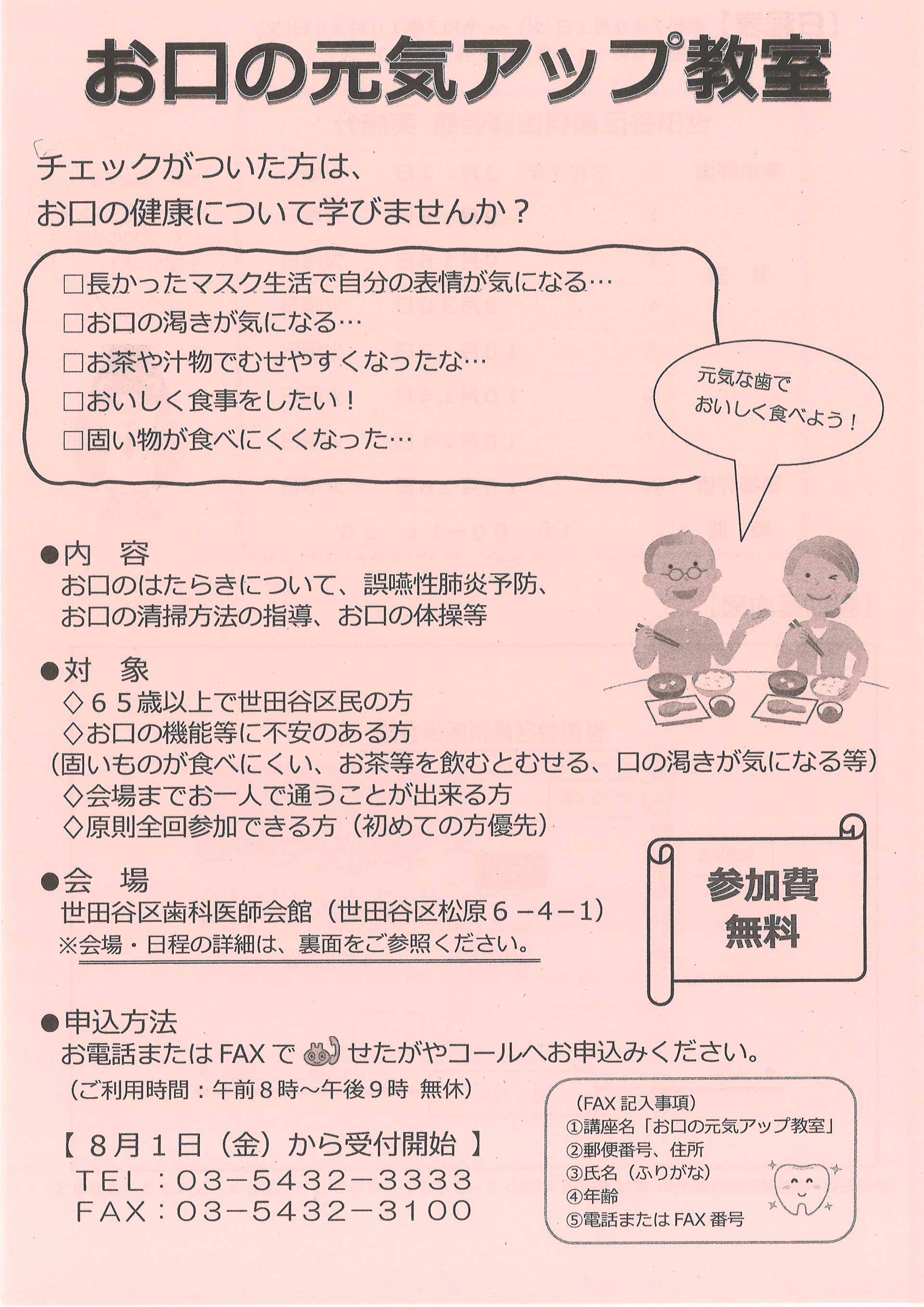 世田谷区では「お口の元気アップ教室」を開催しています。