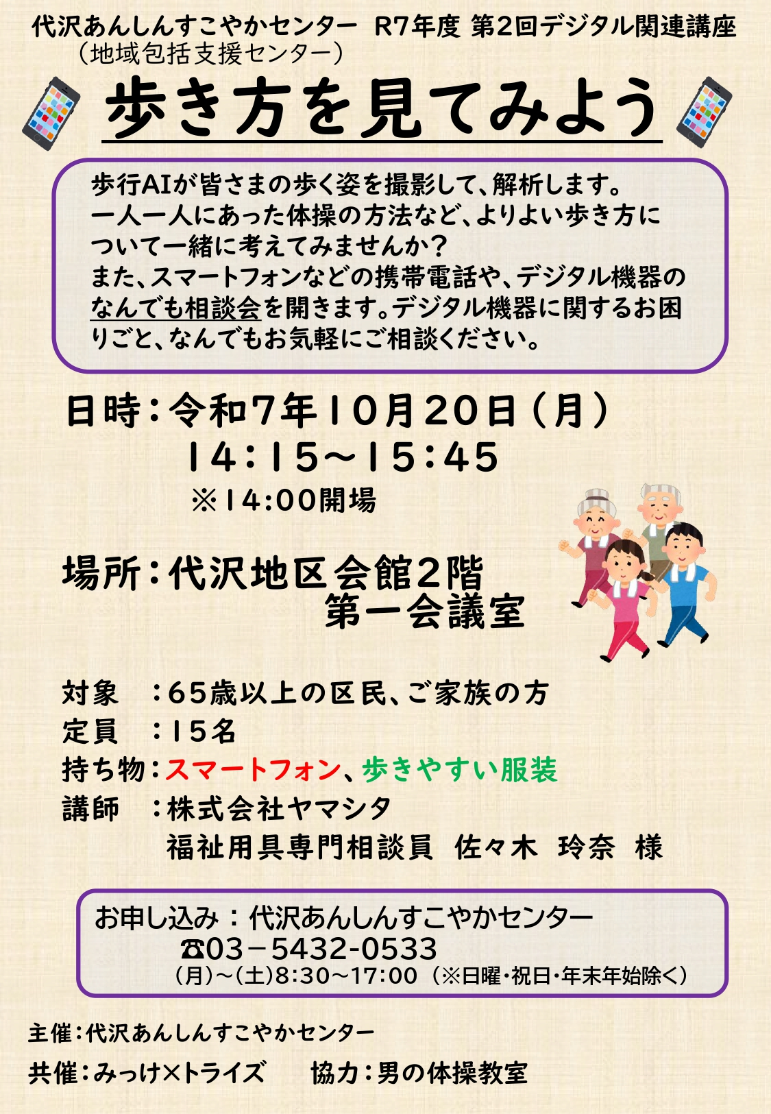 10/20に開催されます「デジタル関連講座~歩き方を見てみよう~」のご案内をいたします。