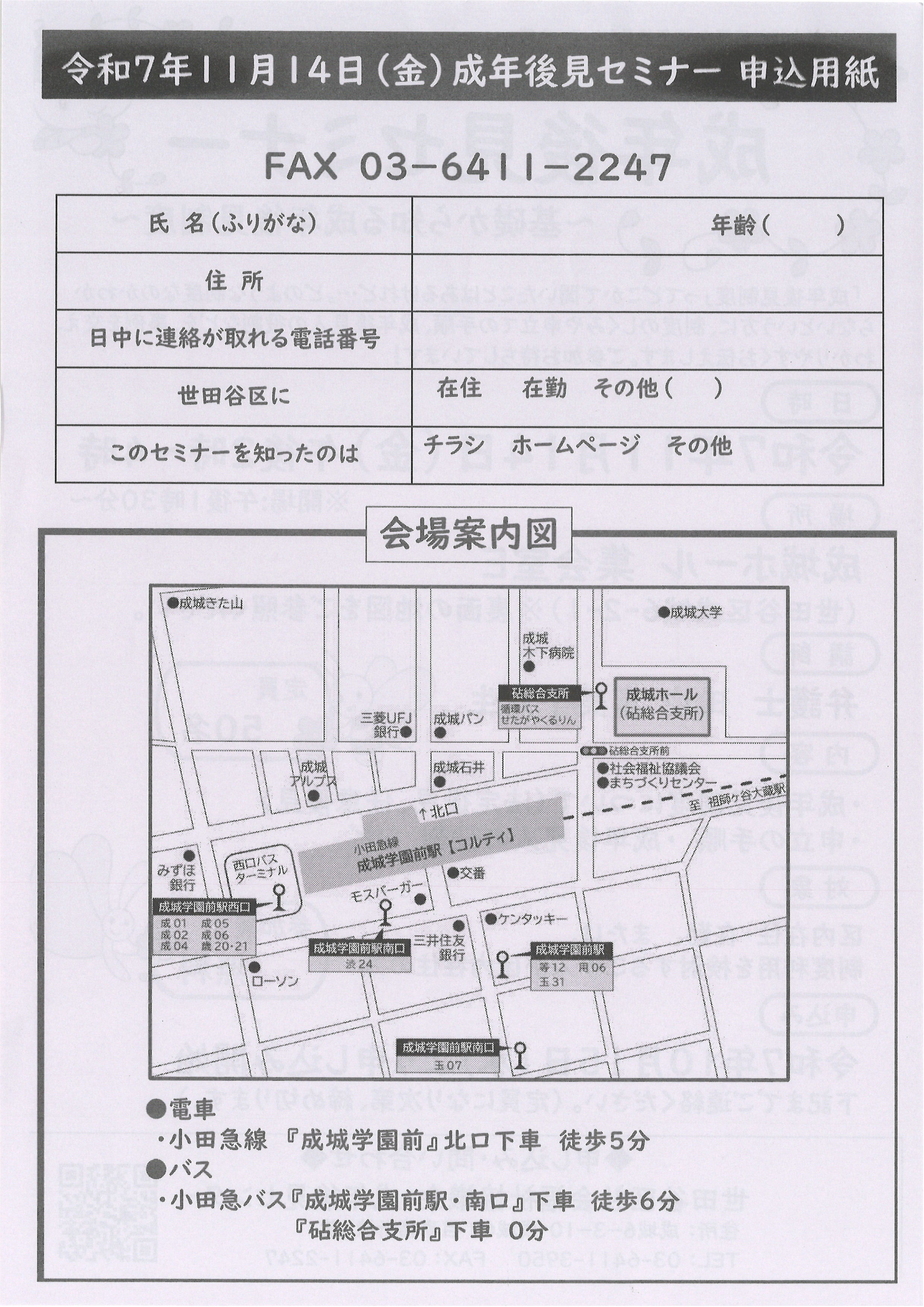 令和7年11月14日(金)午後2時~4時に、世田谷区社会福祉協議会 成年後見センター主催の