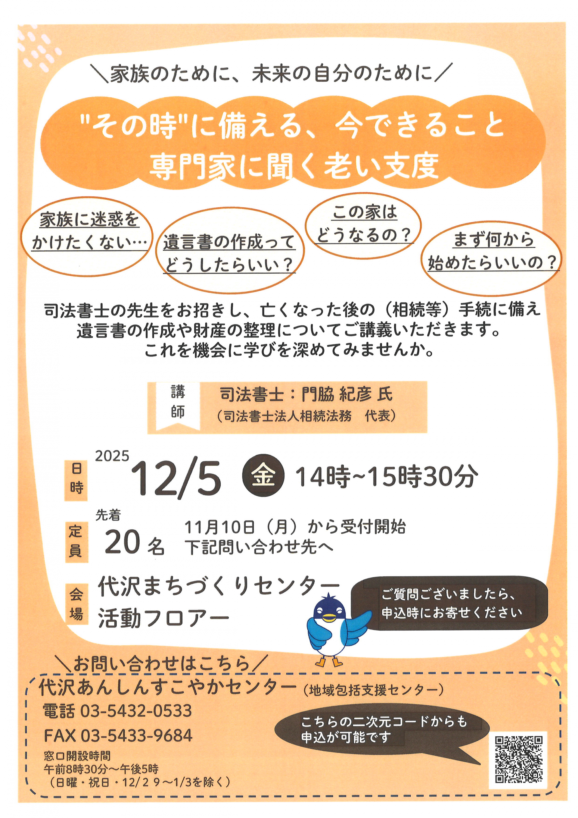 【代沢包括】老い支度講座を開催します!