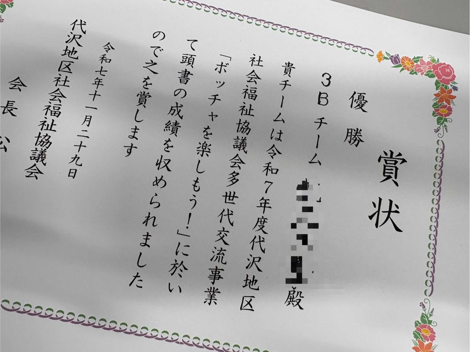 メンバーで力を合わせた結果、なんと、賞状をいただくことができました☆