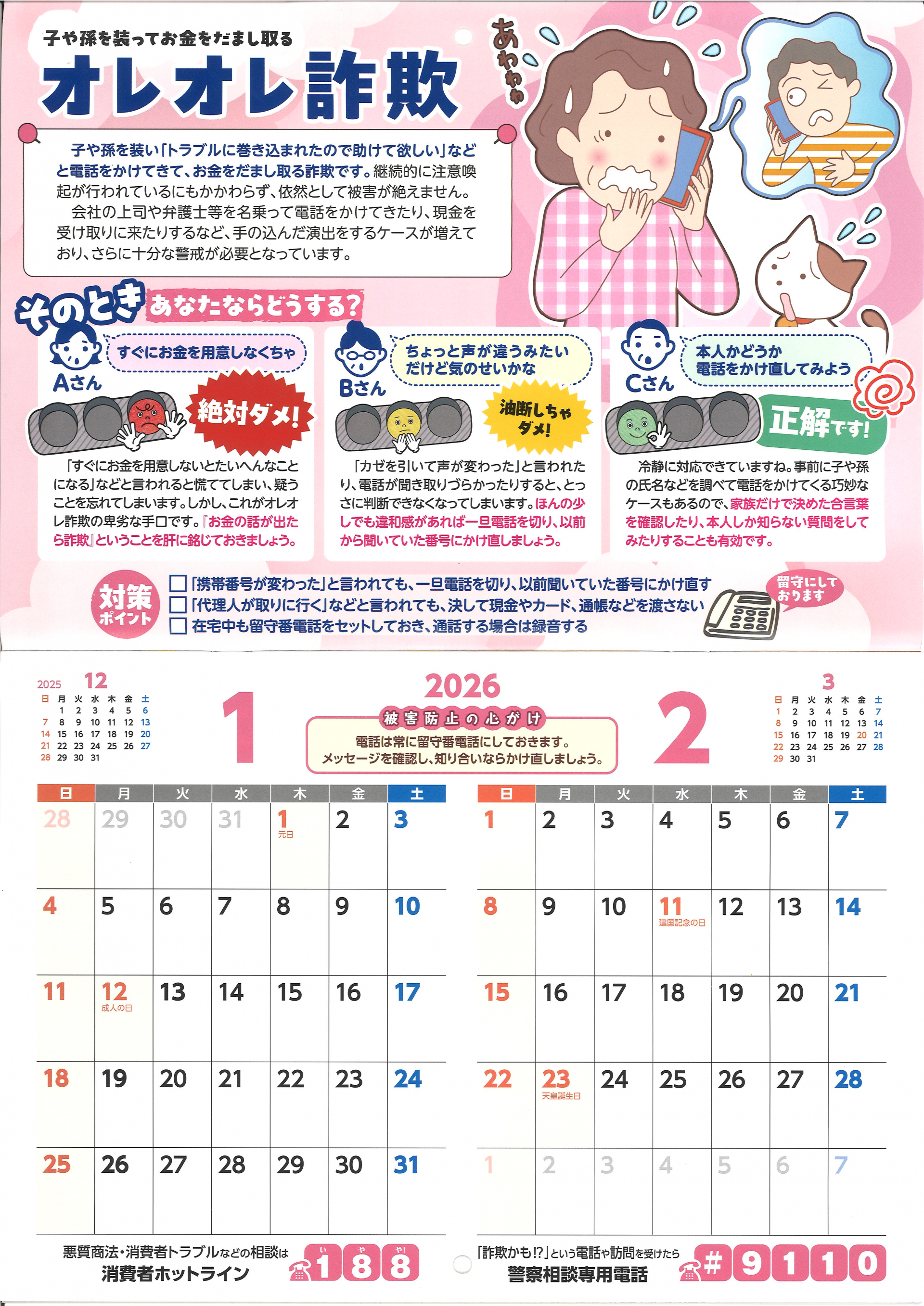 世田谷区消費生活センターより、「2026年度版消費者トラブル防止カレンダー」が今年も届きました。